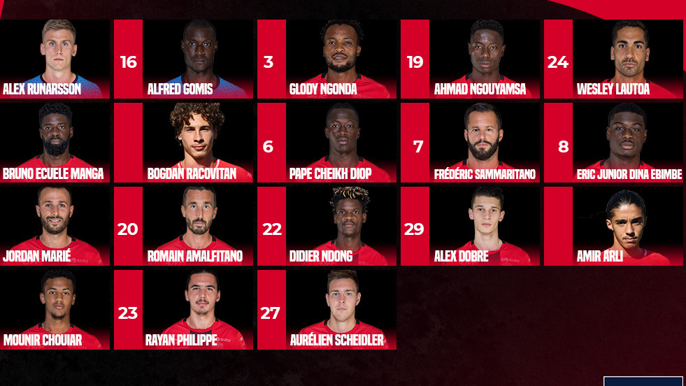 Blessés : Baldé (adducteurs), Benzia (bras), Chafik (malade), Coulibaly (quadriceps), Tavares (adducteurs), Younoussa (adducteurs)