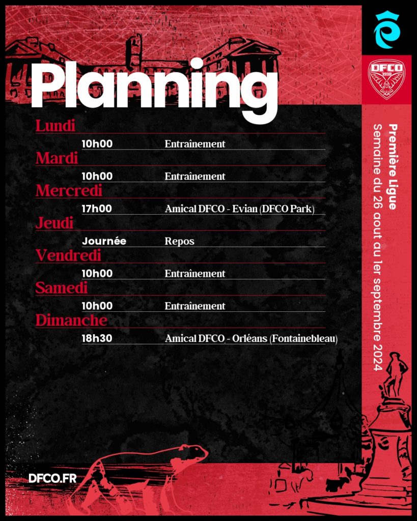 Après leur prometteuse victoire obtenue sur les Allemandes du SC Fribourg (3-2) dimanche à Gaston-Gérard, nos Dijonnaises vont jouer deux nouveaux matchs amicaux cette semaine contre Thonon-Evian et Orléans, pensionnaires de Seconde Ligue. Retrouvez le planning de la semaine !