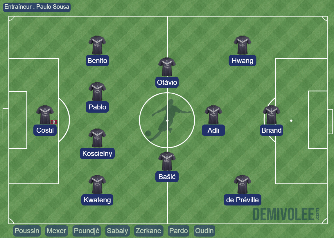 Milieux de terrain : Otavio (5), Pardo (8), Aït Bennasser (17), Adli (19), Lottin (24), Basic (26)