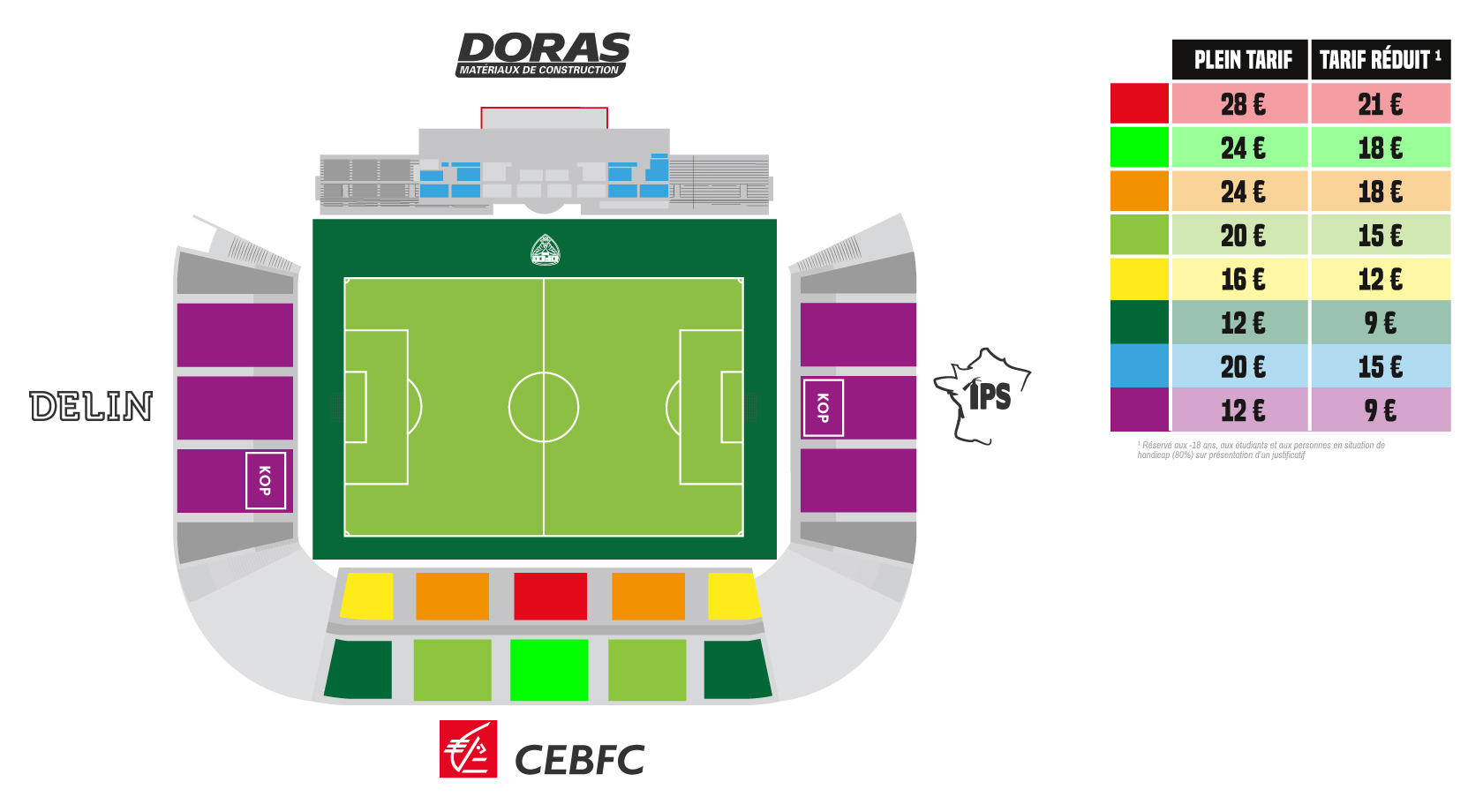 Pour mémoire, les tarifs sont les suivants (Les tribunes DORAS et CEBFC basse sont d’ores et déjà complètes) :
