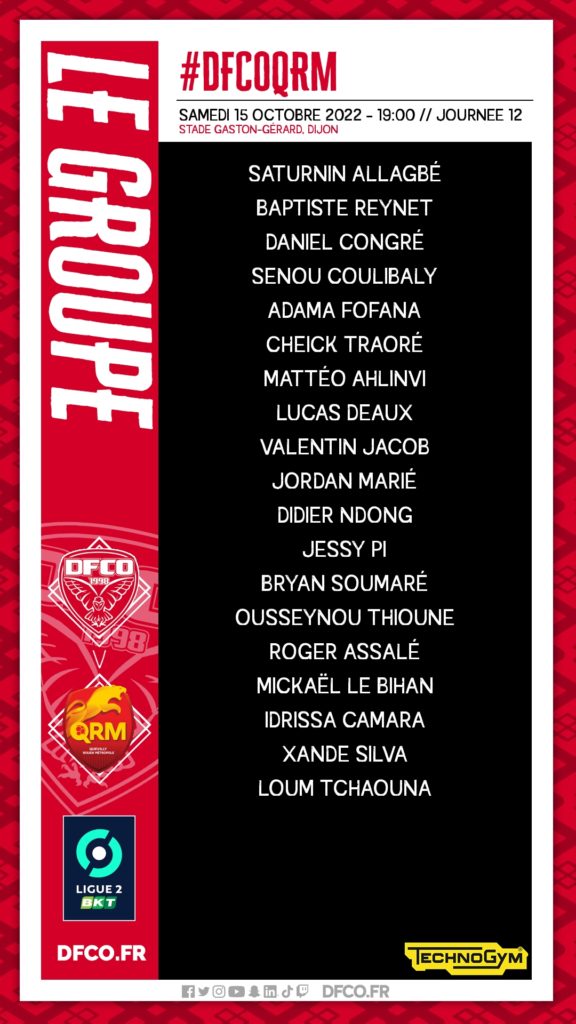 Pour la réception de Quevilly-Rouen Métropole au stade Gaston-Gérard samedi (12e journée de Ligue 2 BKT / 19h00), 19 joueurs ont été convoqués par Omar Daf et son staff.