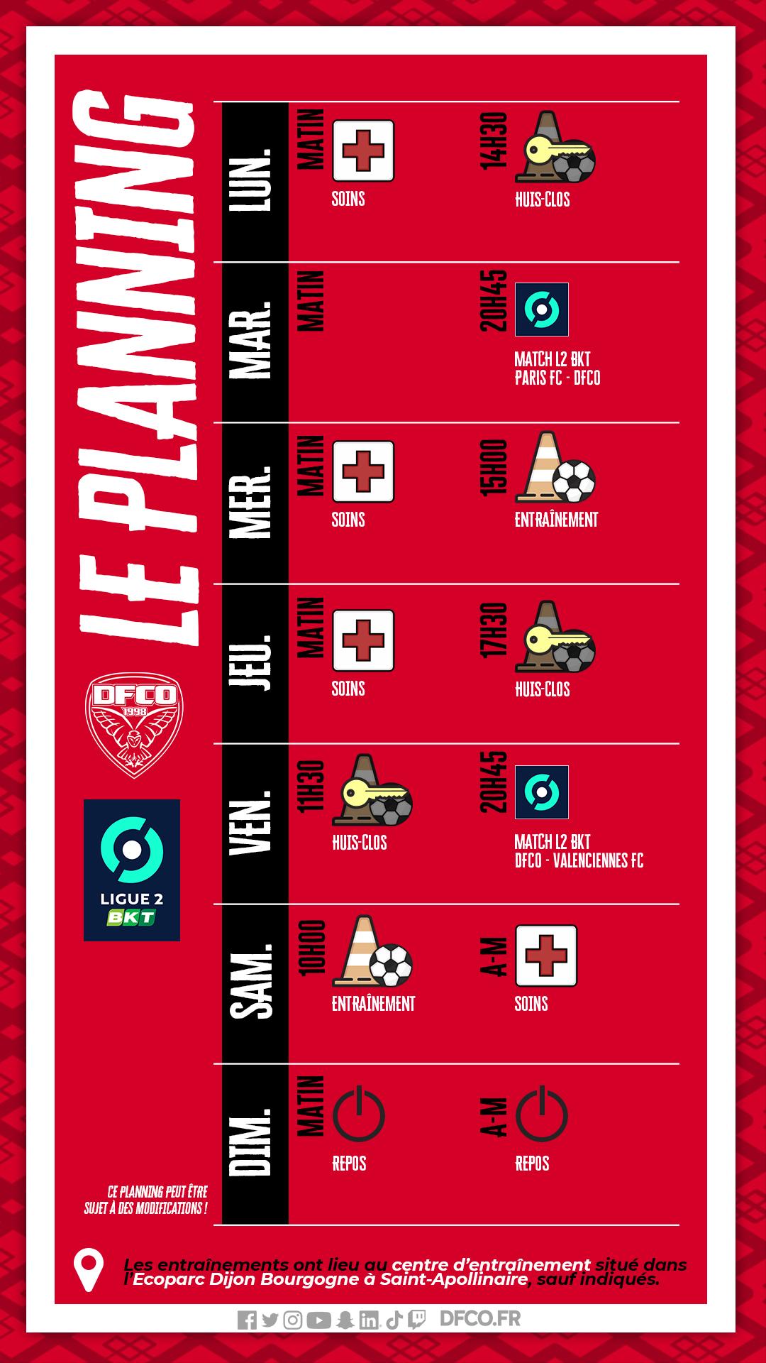 Deux matchs attendent nos dijonnais cette semaine : un déplacement au Paris FC ce mardi à 20h45 et la réception de Valenciennes vendredi à 20h45.