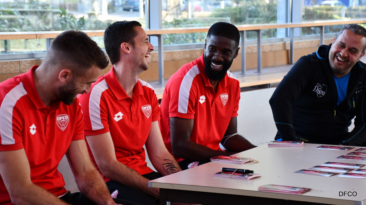 Lors de cet après-midi, nos joueurs ont passé un moment tout sourire avec de jeunes footballeurs âgés de 6 à 10 ans. Après avoir échangé des ballons, et disputé quelques matchs, la séance s »est conclue par une séance de questions-réponses, photos et dédicaces.
