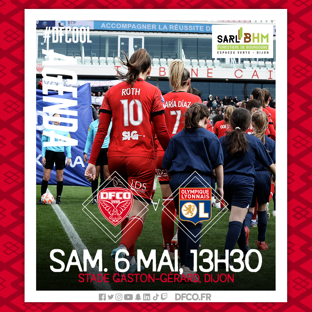 L’équipe féminine du DFCO reçoit l’Olympique Lyonnais le samedi 6 mai au stade Gaston-Gérard (coup d’envoi à 13h30). Ne manquez pas cette belle affiche !