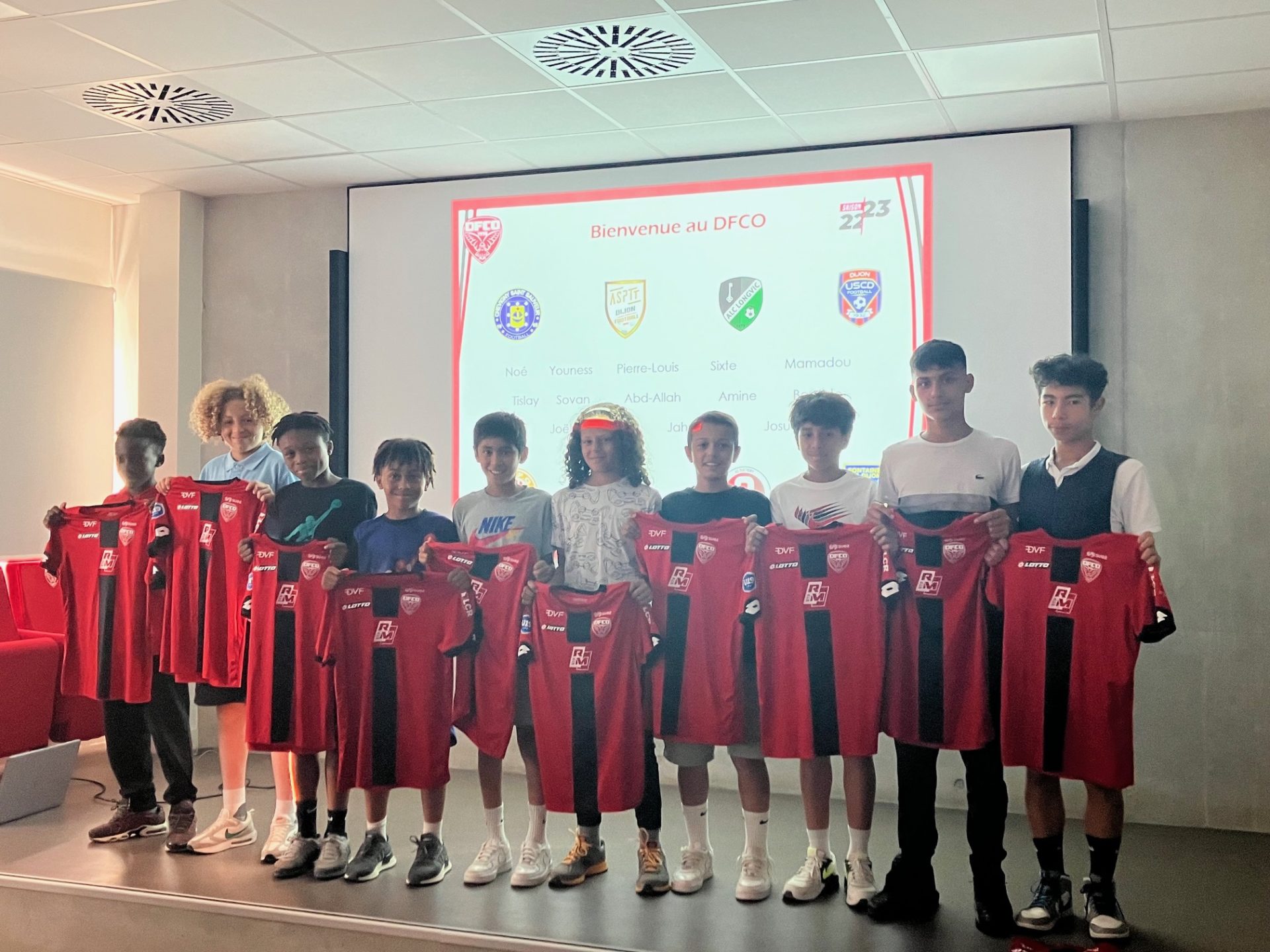 Les clubs de l’ASPTT Dijon, Dijon USC, FC Fontaine-Lès-Dijon, Chevigny Saint Sauveur Football, ASC Saint-Apollinaire, ALC Longvic, AS Fontaine d’Ouche Dijon et AS Quetigny étaient représentés par leurs jeunes joueurs et une partie de leur éducateur. Après quelques mots de bienvenue, un maillots du DFCO a été offert à chaque jeune, avant que toute l’assemblée partage le verre de l’amitié tout en se donnant rendez-vous au mois d’août pour la reprise de la saison 2023/2024 !
