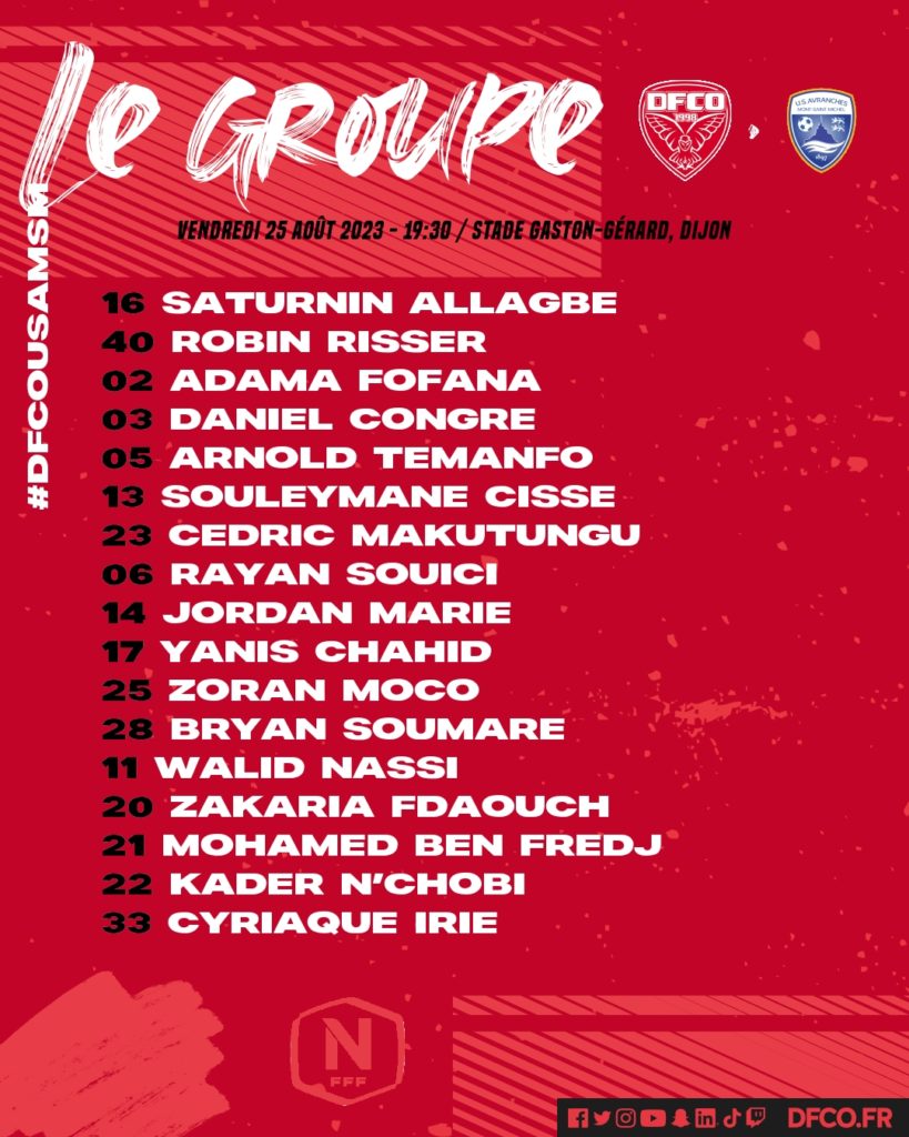 Un groupe de 17 joueurs est convoqué par Benoît Tavenot et son staff pour la réception de l’US Avranches ce vendredi (19h30) au stade Gaston-Gérard (3e journée de National).