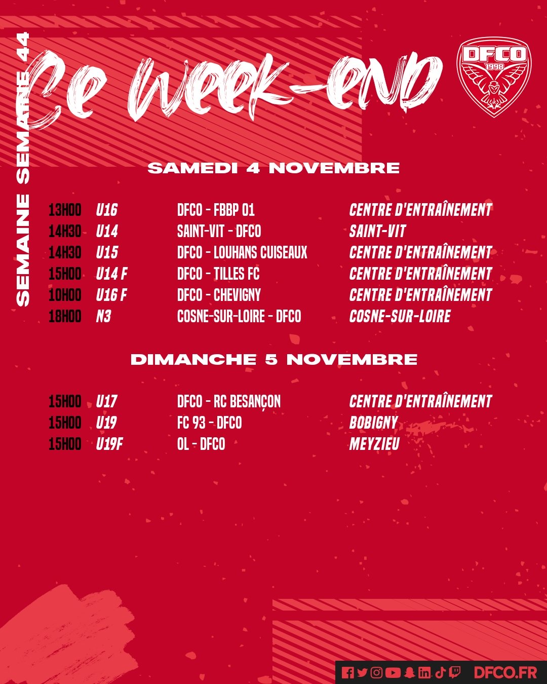 Retrouvez le planning des jeunes de la formation pour ce week-end du 4-5 novembre.