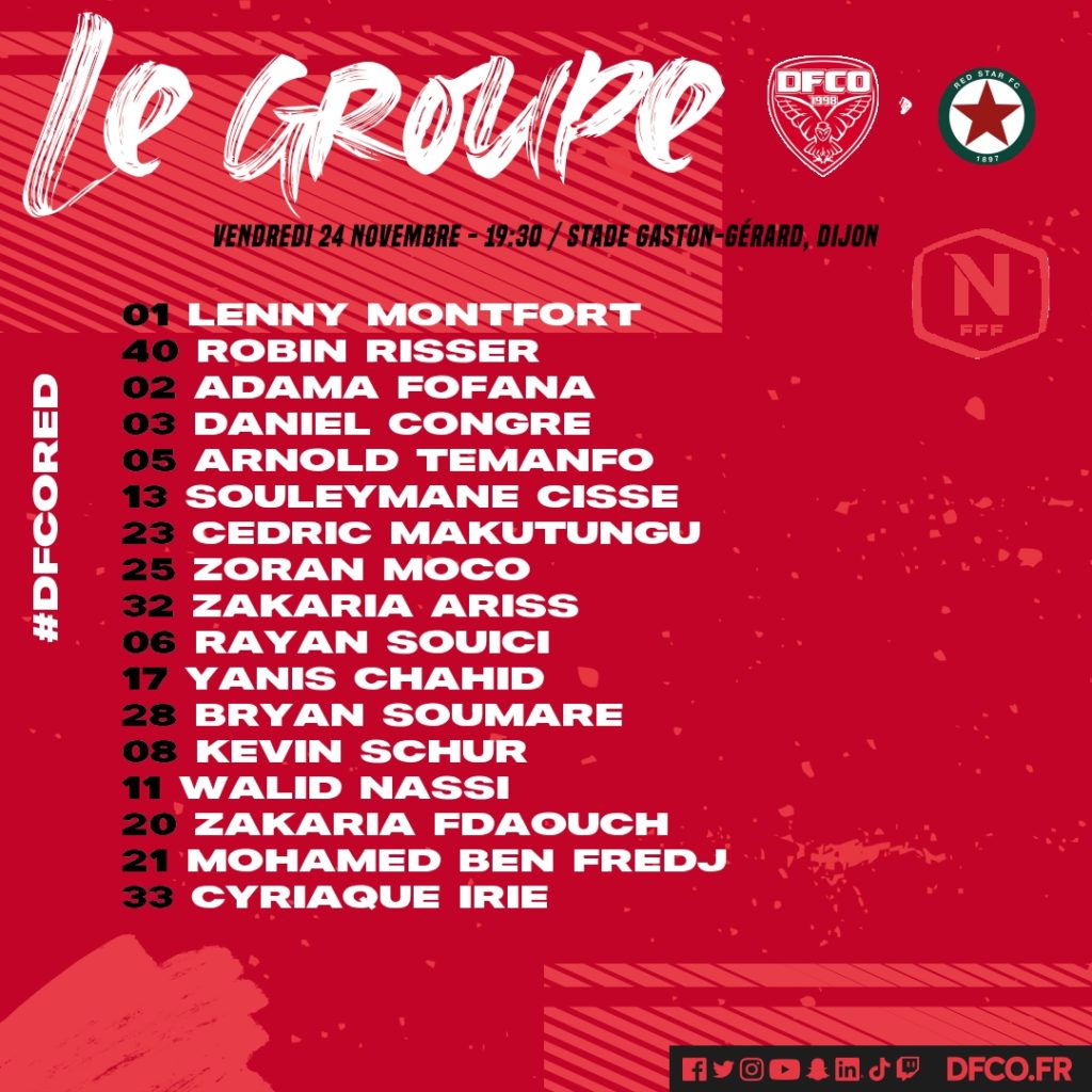Benoît Tavenot et son staff ont convoqué un groupe de 17 joueurs pour affronter le Red Star, leader du championnat de National, ce vendredi 24 novembre (coup d’envoi à 19h30).