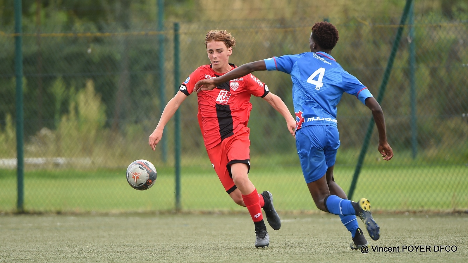 Les U19 remportent une belle victoire dans un match à rebondissements ! C'est une histoire de penalties pour commencer. Le premier est pour Nancy qui ouvre la marque dès la 2e minute. Valey égalise en se faisant justice lui-même (1-1, 15'). Les Dijonnais, plus incisifs dans les phases de transition, prennent l'avantage à la demi-heure de jeu par Khiri, d'une bonne frappe (1-2, 30'). C'est ensuite Touré qui s'en va défier le gardien adverse pour inscrire le troisième but dijonnais (1-3, 41'). Nancy réduira la marque juste avant la pause, sur un centre qui finit sa course dans le petit filet opposé sans que personne ne le touche (2-3, 45').
