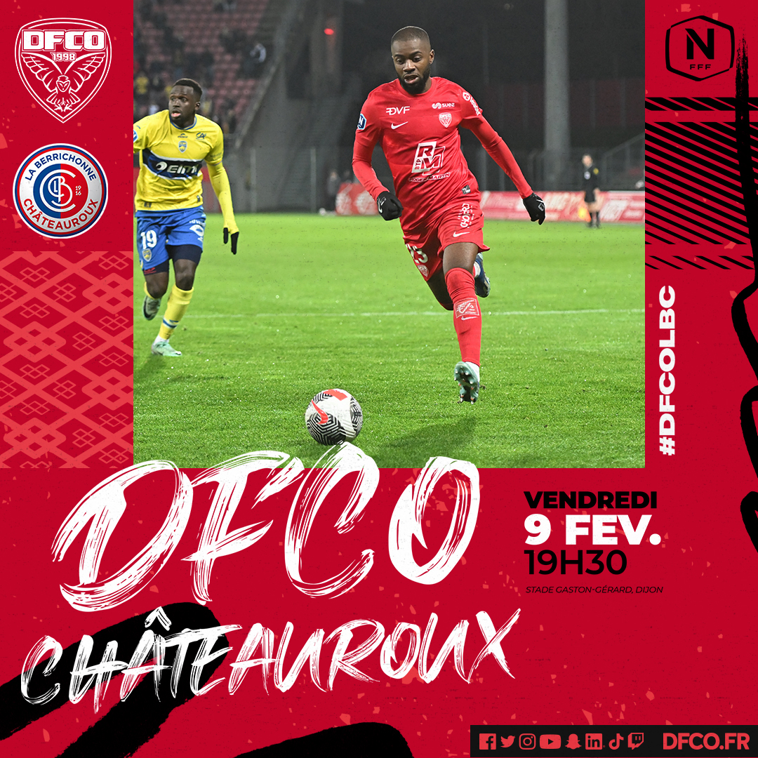 Le vendredi 9 février 2024 (19h30) au stade Gaston-Gérard, le DFCO réceptionne la Berrichonne de Châteauroux, un club historique français. Découvrez toutes les infos billetterie et commandez vos places dès maintenant !