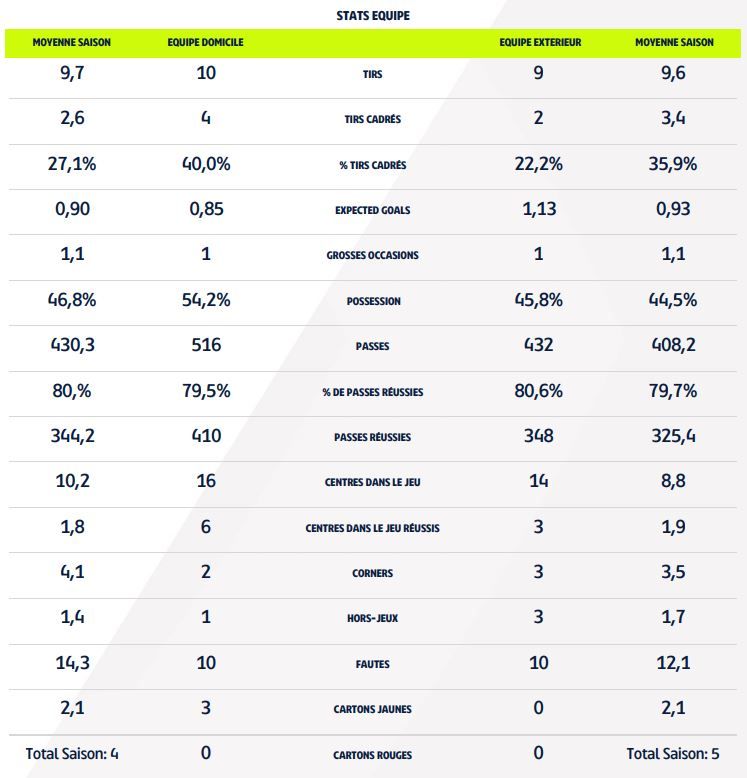 Suite à la défaite dijonnaise face au Stade de Reims (0-1), retrouvez les principales statistiques du match.