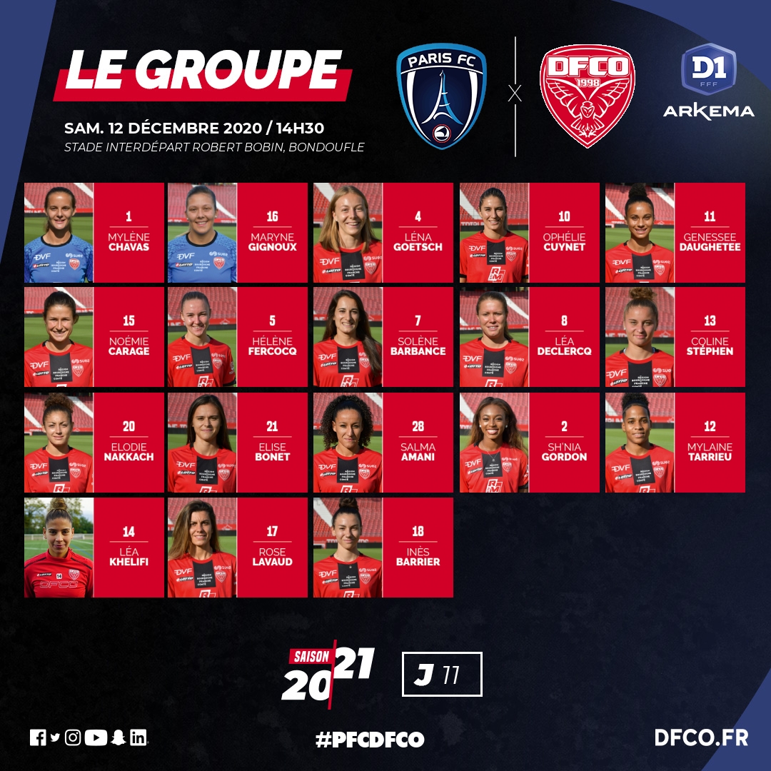 Yannick Chandioux et son staff ont convoqué un groupe de 18 joueuses pour affronter le Paris FC ce samedi 12 décembre (14h30), match comptant pour la 11e journée de Division 1 Arkema.