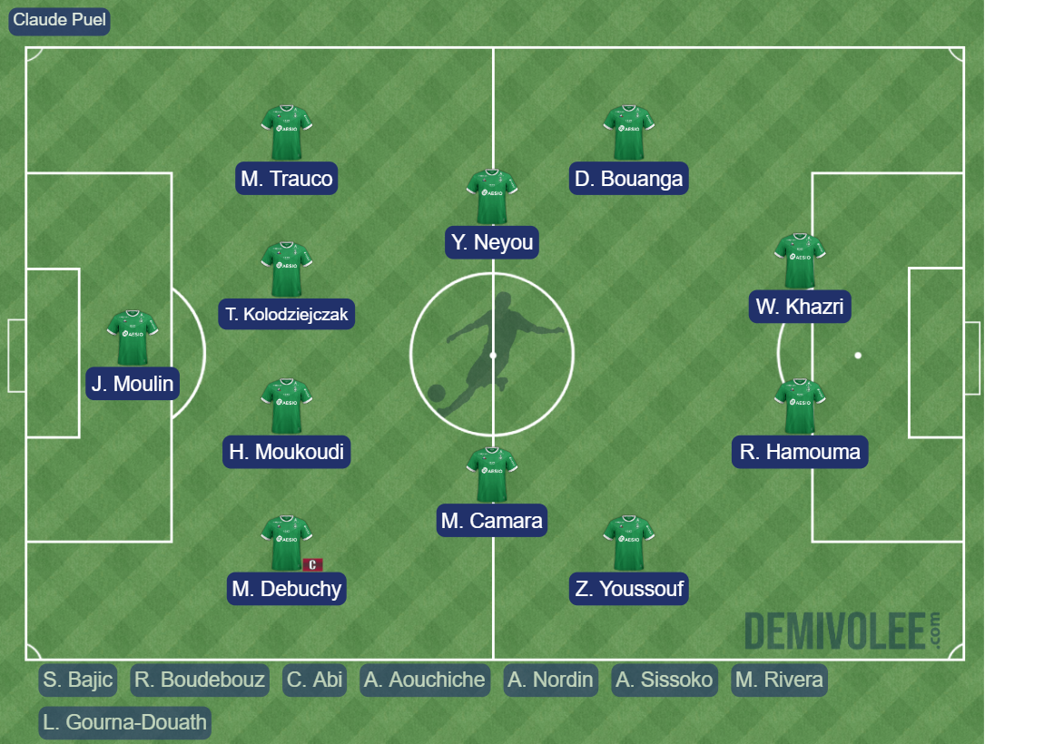 Attaquants : Maxence Rivera (32) – Charles Abi (9) – Wahbi Khazri (10) – Jean-Philippe Krasso (14) – Arnaud Nordin (18) – Denis Bouanga (20) – Romain Hamouma (21)