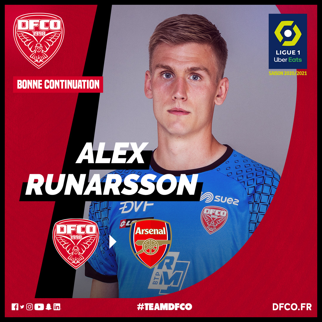 Le DFCO officialise le transfert de Rúnar Alex Rúnarsson à Arsenal FC (Premier League). Le gardien islandais de 25 ans a signé un contrat de 4 ans avec les Gunners, à la recherche d’un gardien de but pour épauler Bernd Leno.
