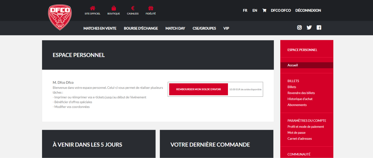 Pour les personnes ne disposant pas d'un accès Internet et souhaitant se faire rembourser, il vous est également possible de le faire au DFCO Store (17 rue du stade, DIJON), muni d'un RIB.