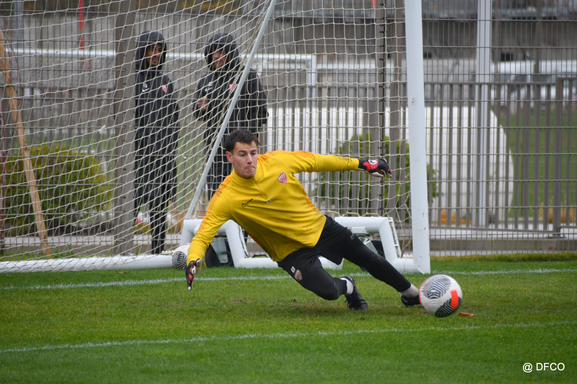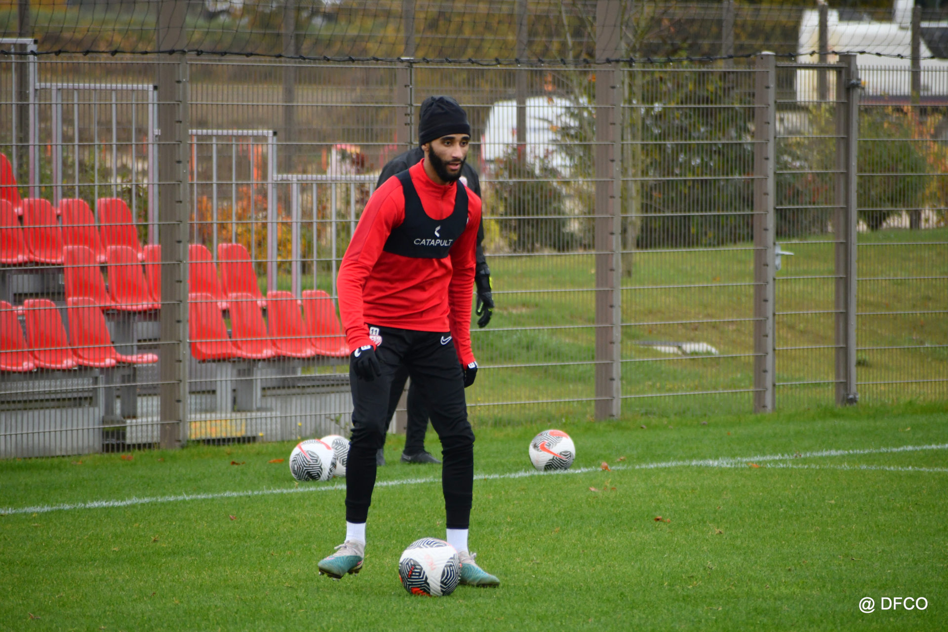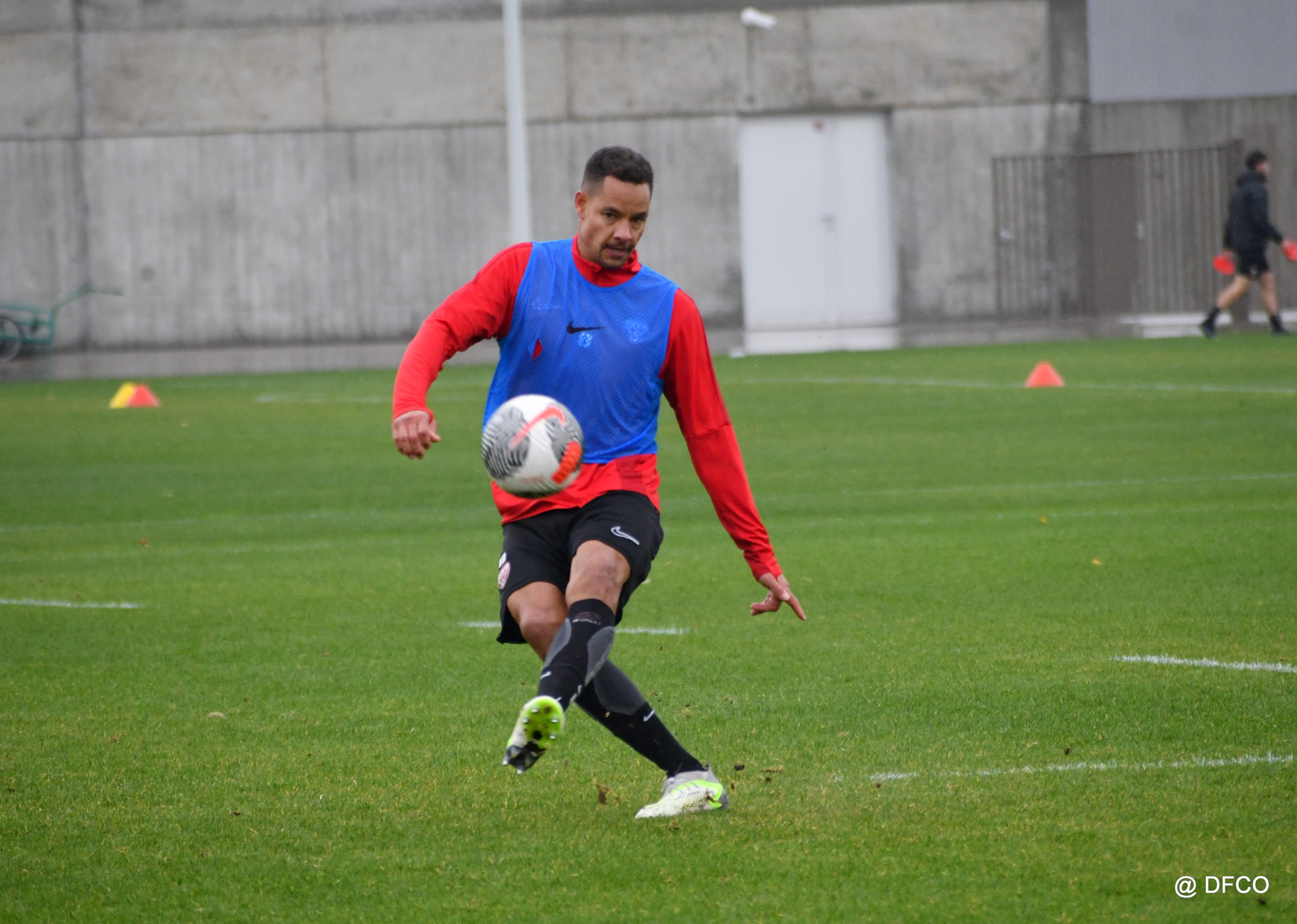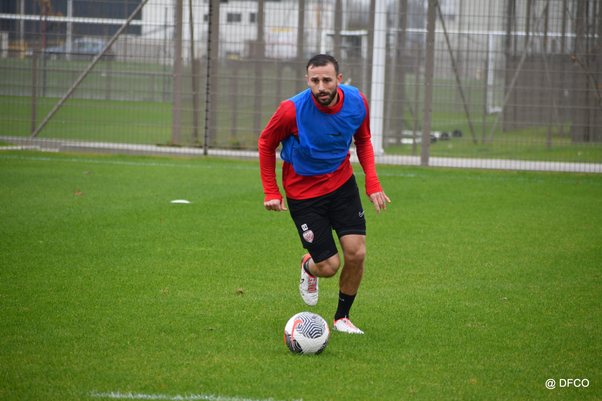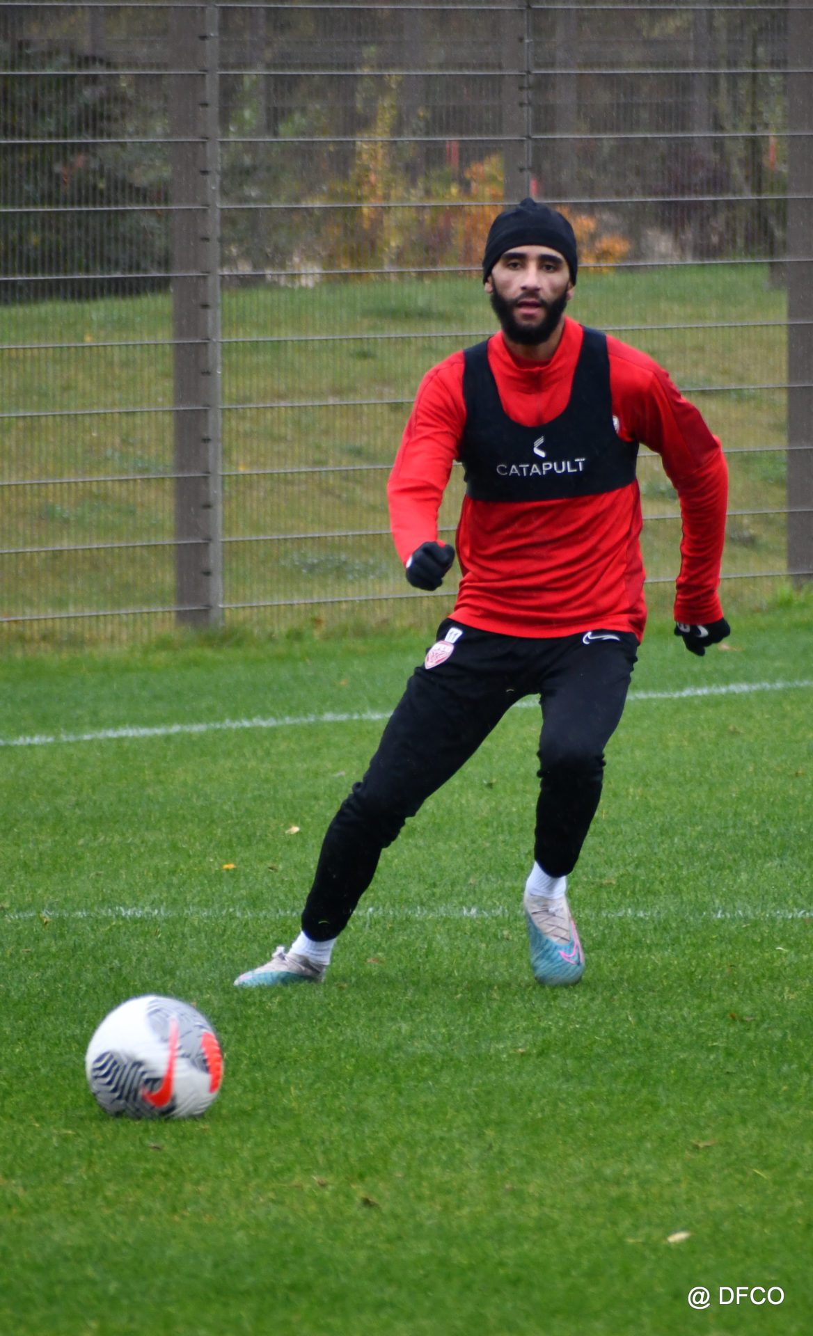 Après avoir partagé l’après-midi avec les participants du DFCO Tour by Crédit Mutuel (voir en cliquant ici), les Rouges ont retrouvé la pluie sur la séance matinale de jeudi, à deux jours de se déplacer sur la pelouse du RC Doullens, près d’Amiens, pour le compte du 7e tour de Coupe de France.
