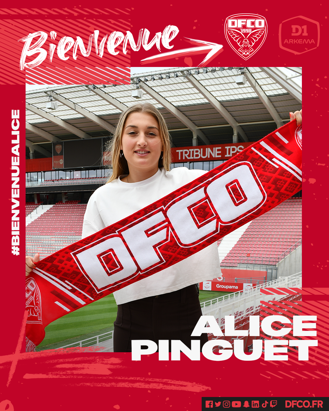 La signature d’Alice Pinguet est dans la continuité de la politique de recrutement entreprise par le DFCO, comme l’explique Sylvain Carric, manager général de la section féminine : « Nous avons choisi de recruter une jeune joueuse à fort potentiel, que nous suivons depuis plusieurs années. Elle va venir apporter toutes ses qualités et une bonne concurrence au poste de gardienne de but. »