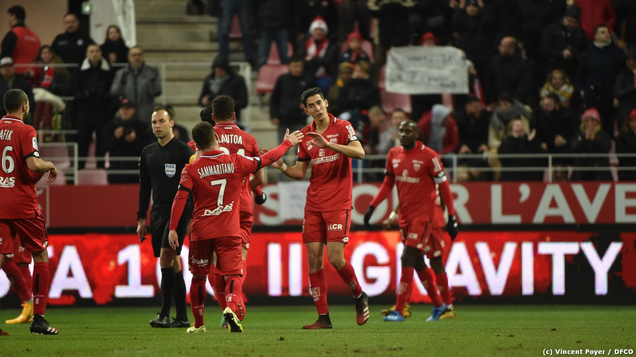 Le DFCO presse et est joliment récompensé. Après un beau débordement de Frédéric Sammaritano, Hamza Mendyl se jette au second poteau et ouvre la marque ! (1-0, 39").