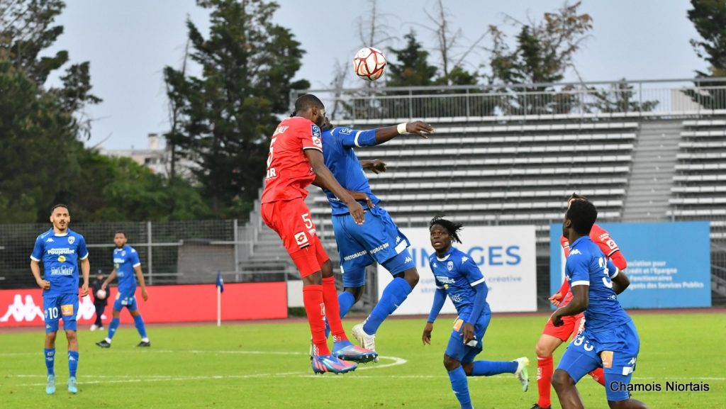 On assiste ensuite à un joli numéro de Valentin Jacob dans la défense niortaise après une passe en retrait hasardeuse de Moutachy. Sa frappe au premier poteau est repoussée en corner par Mathieu Michel (17′).