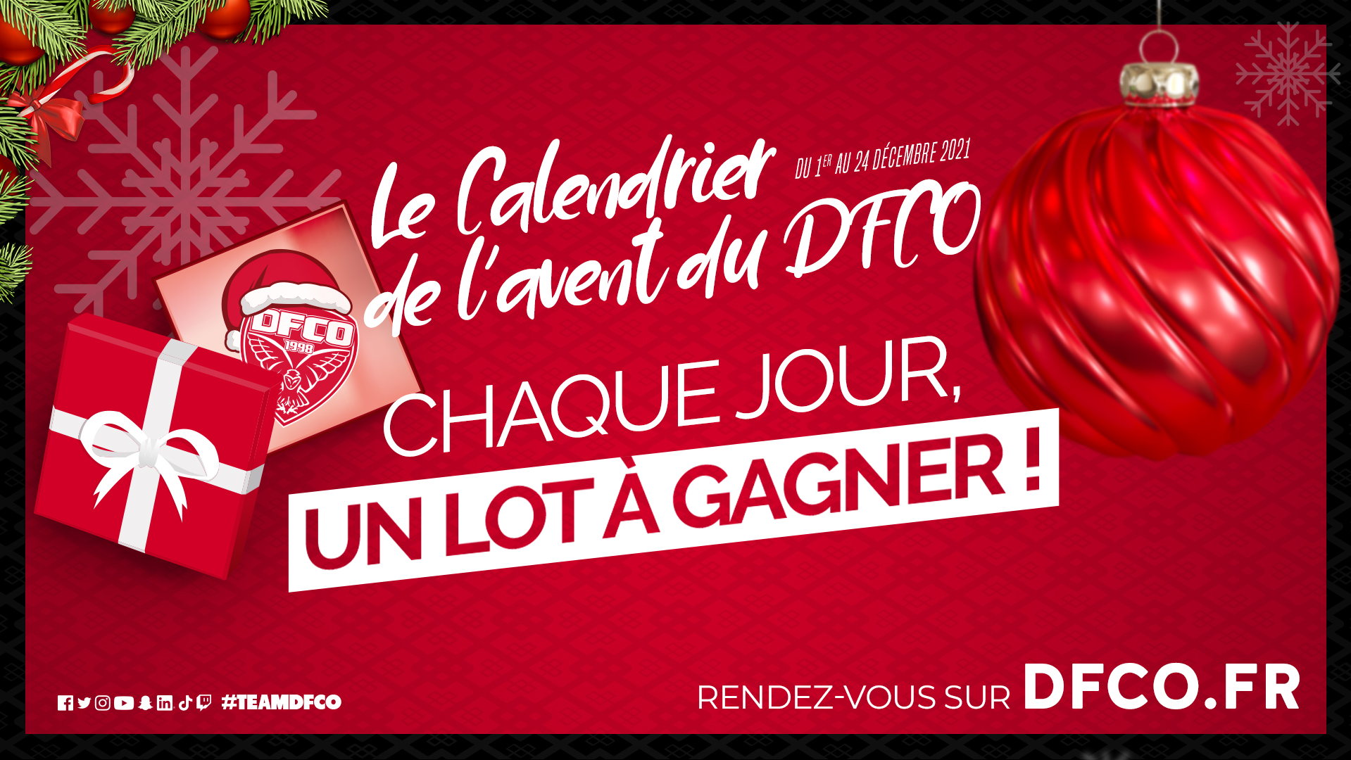 Le calendrier de l'Avent du DFCO est de retour sur www.dfco.fr avec chaque jour, derrière une case, un superbe cadeau à gagner ! Pour participer, cliquez sur la case correspondante à la date du jour et tentez votre chance !
