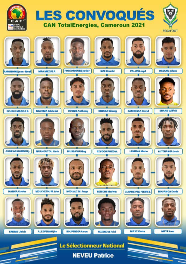 Le sélectionneur de l'équipe nationale du Gabon, Patrice Neveu, a dévoilé une liste de 30 joueurs sélectionnés pour disputer la prochaine Coupe d'Afrique des Nations au Cameroun du 9 janvier au 6 février 2022. Bruno Ecuele Manga fait partie des 30 Panthères !