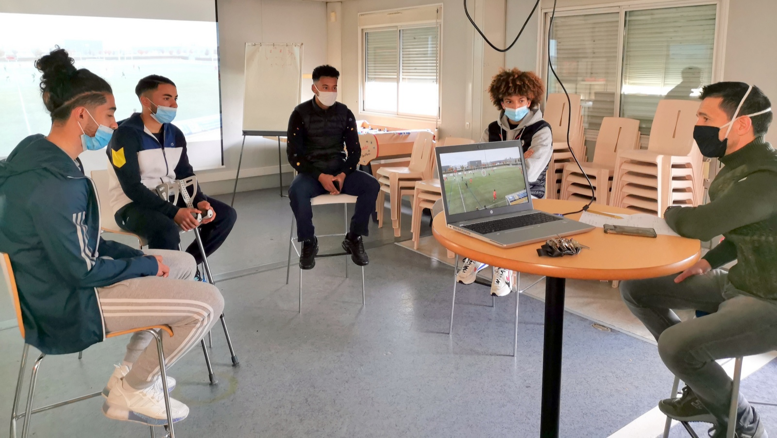 Éric Carrière et Sébastien Degrange, Directeur du Centre de formation, ont choisi de réaliser cet échange constructif avec quatre milieux de terrain. Au programme, partage de son expérience de joueur professionnel et analyse de leurs performances personnelles via un montage vidéo.