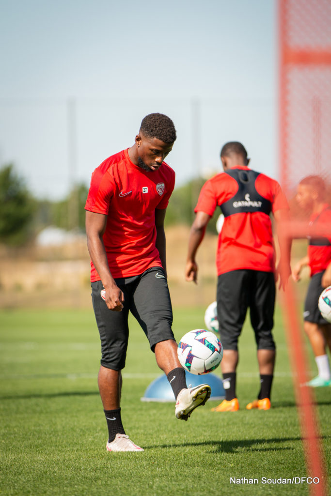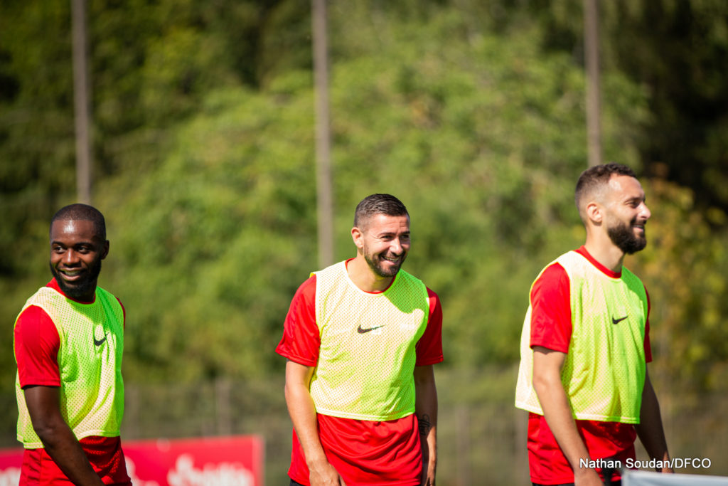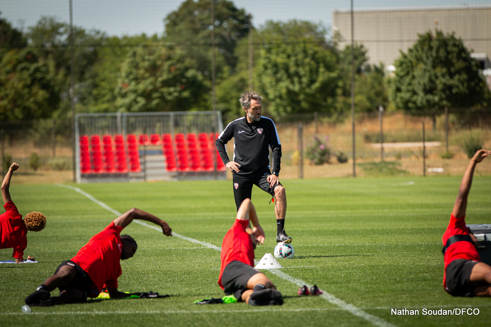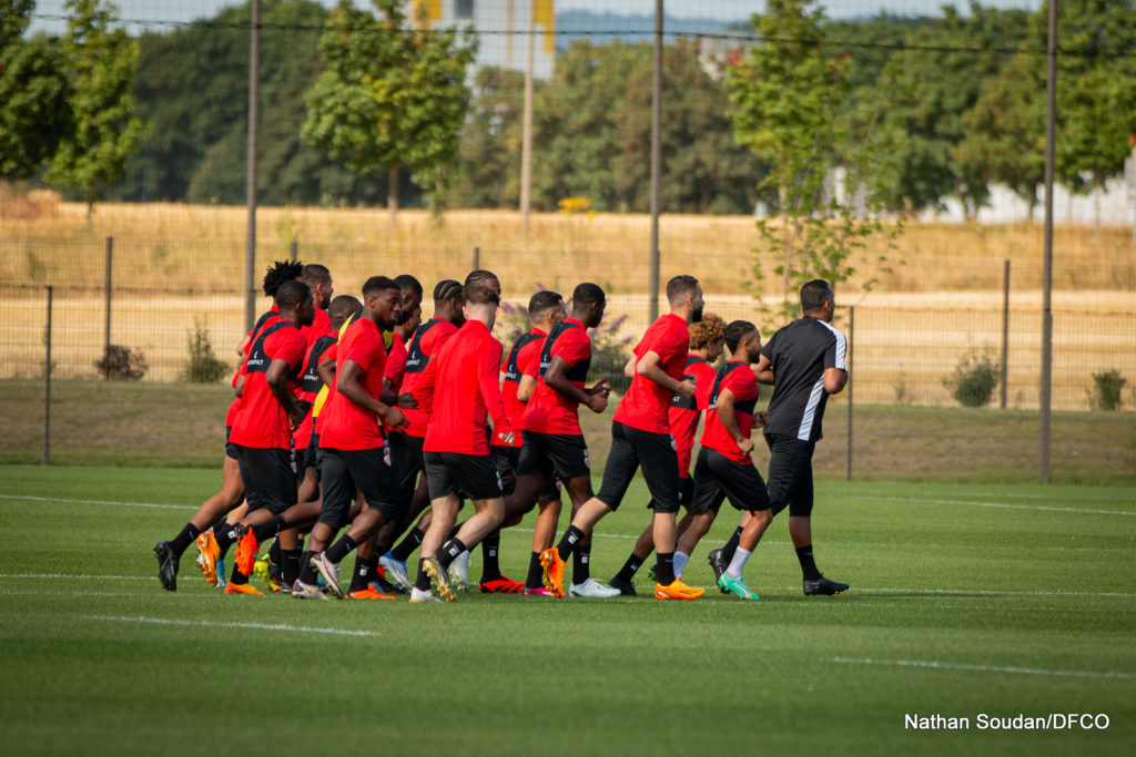 Après avoir fait connaissance avec le nouveau coach du DFCO, Benoît Tavenot, et son staff technique, le groupe a pris part à une séance d’1h30 d’entraînement.