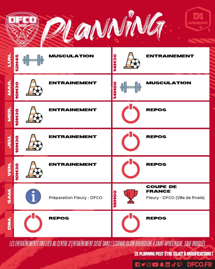 Après son match nul ramené de Lille (2-2), nos Dijonnaises vont se projeter sur le huitième de finale de Coupe de France face à Fleury samedi (18h00). Voici le programme de travail cette semaine !