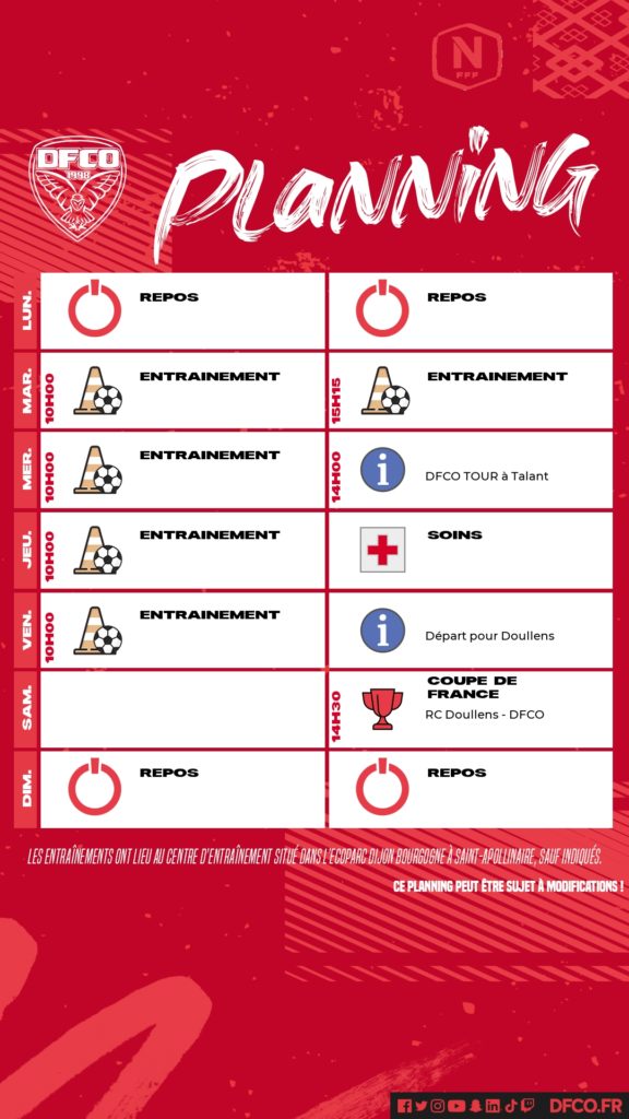 Cette semaine, le DFCO rebascule en mode Coupe de France avec un 7e tour à jouer face au RC Doullens, samedi (14h30) dans la Somme. Mercredi après-midi, nos joueurs seront à Talant pour le DFCO Tour by Crédit Mutuel !