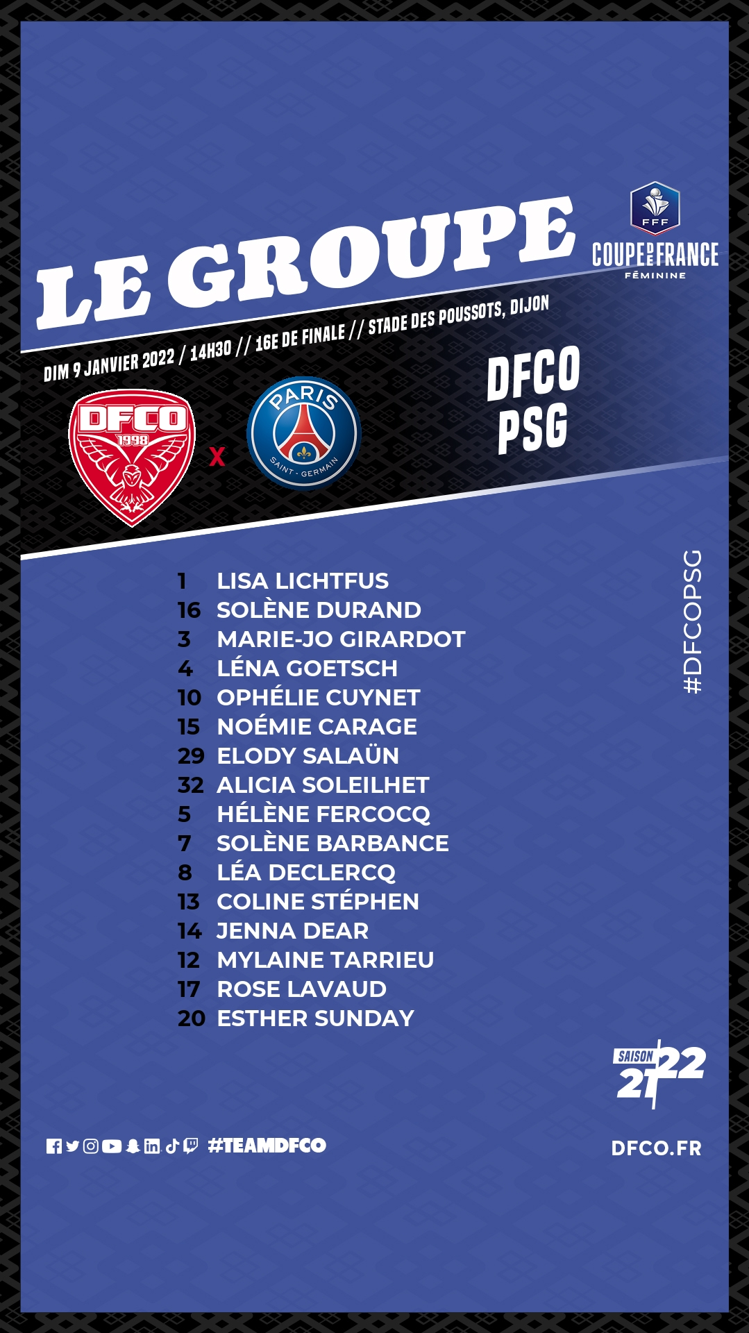Coupe de France (F)/ DFCO-PSG : le groupe dijonnais