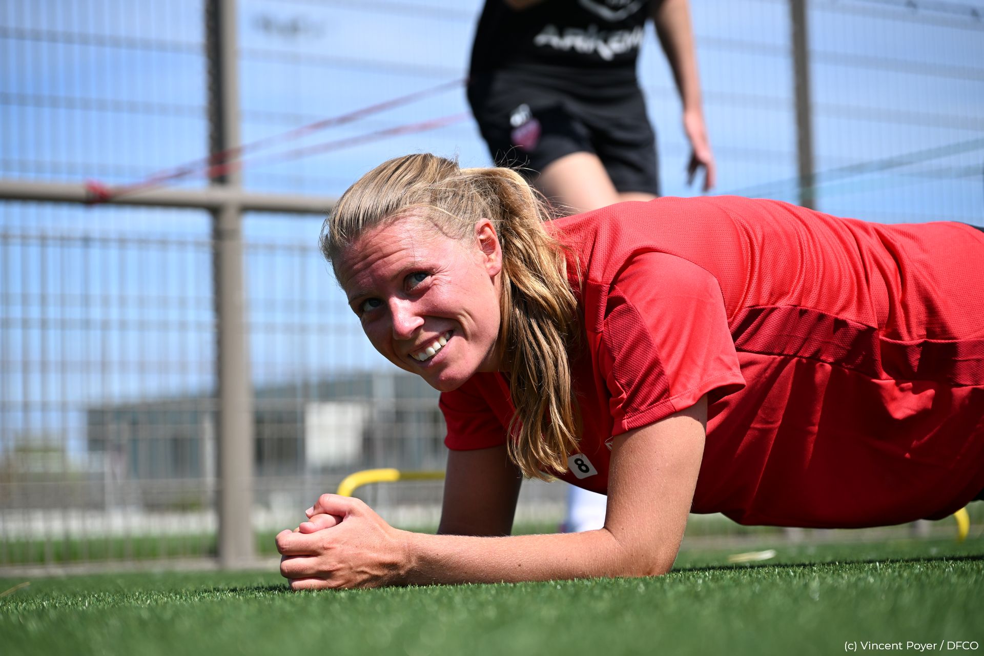 Pour le coach Sébastien Joseph, l’objectif de ce matin était avant tout « de reprendre plaisir à toucher le ballon ensemble » avant une séance de renforcement musculaire. L’idée étant maintenant de monter en gamme dans les semaines à venir pour nos joueuses, studieuses et souriantes.
