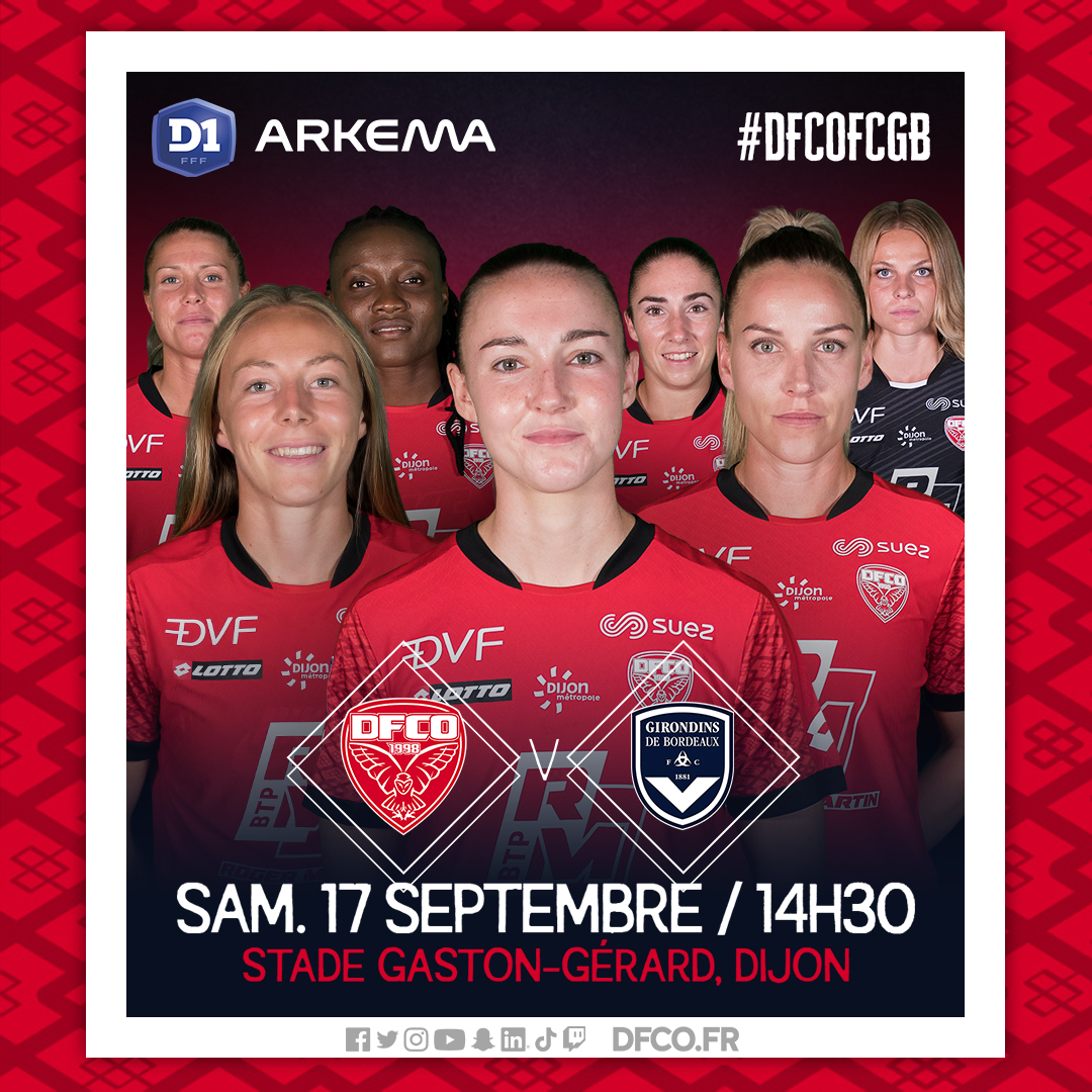 Pour son premier match à domicile de la saison 2022/2023 le samedi 17 septembre (14h30), la section féminine du DFCO recevra les Girondins de Bordeaux (2e journée de D1 Arkema) au stade Gaston-Gérard !