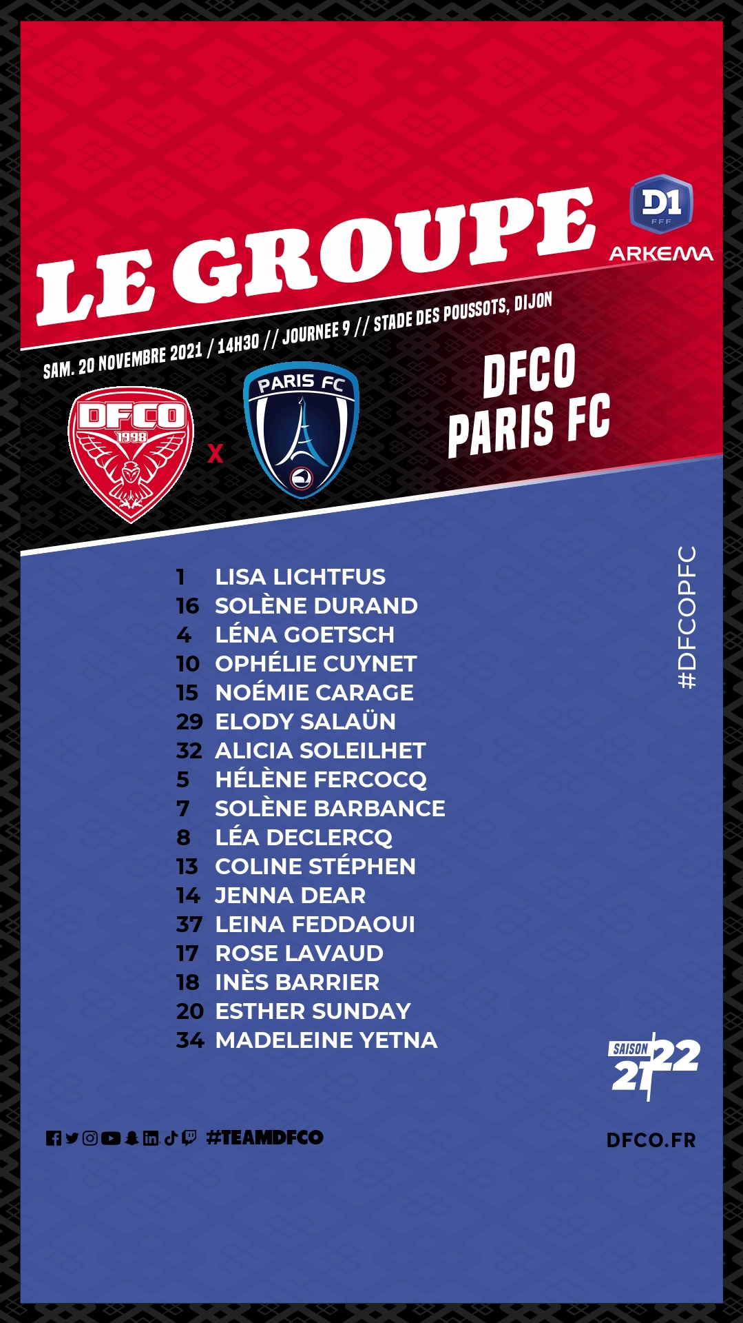 D1 Arkema / DFCO – Paris FC : le groupe dijonnais