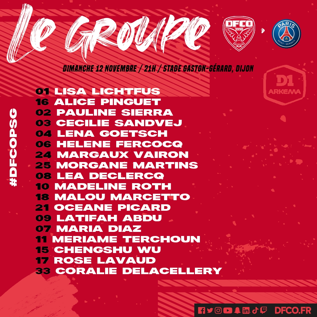 Pour le compte de la septième journée de D1 Arkema, le DFCO reçoit le PSG ce dimanche à 21h (prenez vos billets!). Voici le groupe concocté par Sébastien Joseph et son staff.