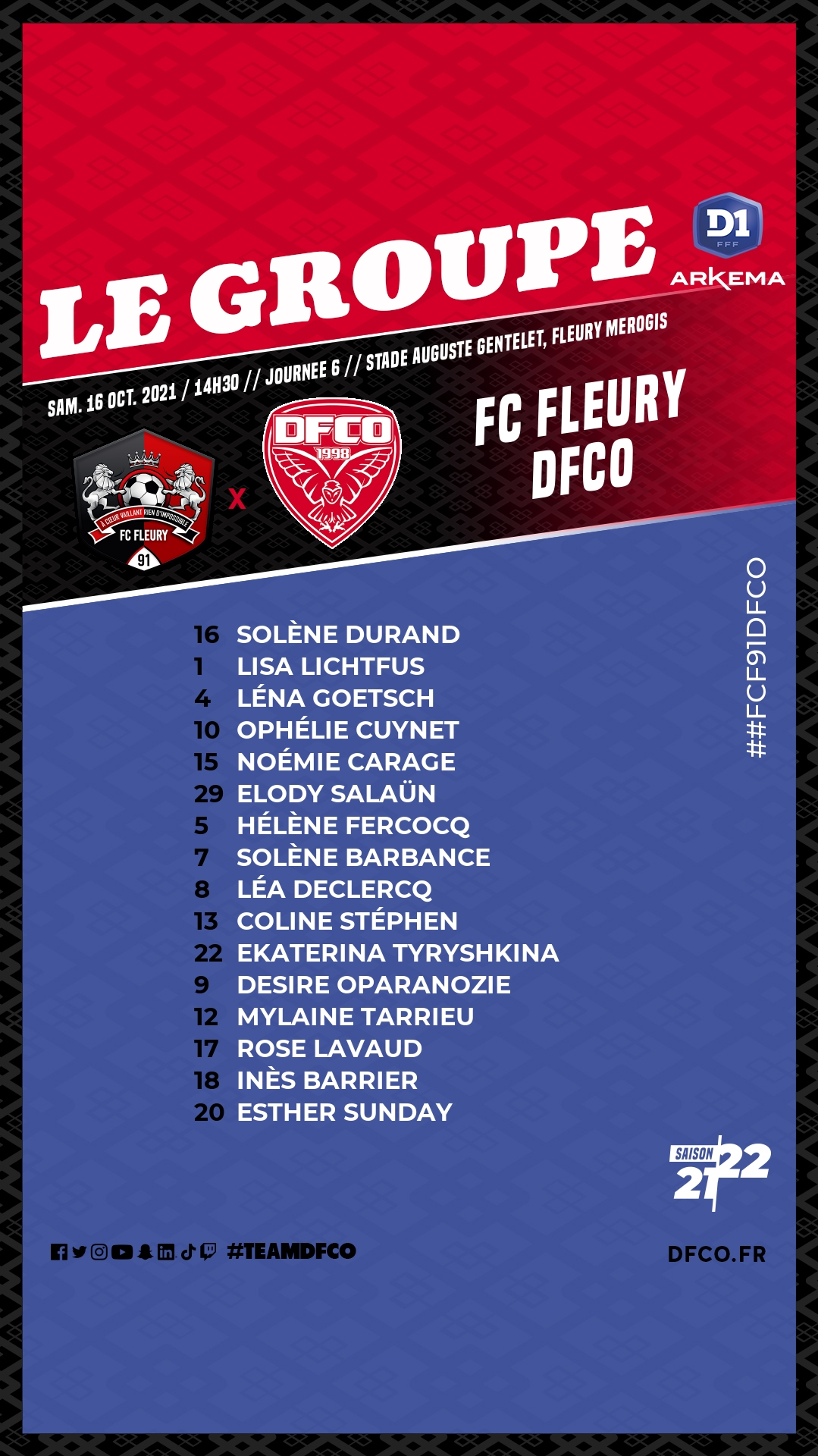 D1 Arkema / FC Fleury 91 – DFCO : le groupe dijonnais