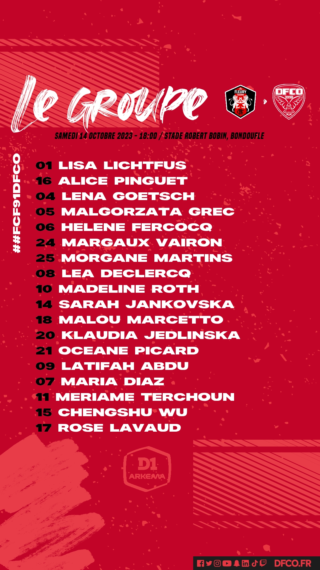 Pour le compte de la quatrième journée de D1 Arkema, le DFCO se déplace à Fleury ce samedi à 18h. Voici le groupe concocté par Sébastien Joseph et son staff.