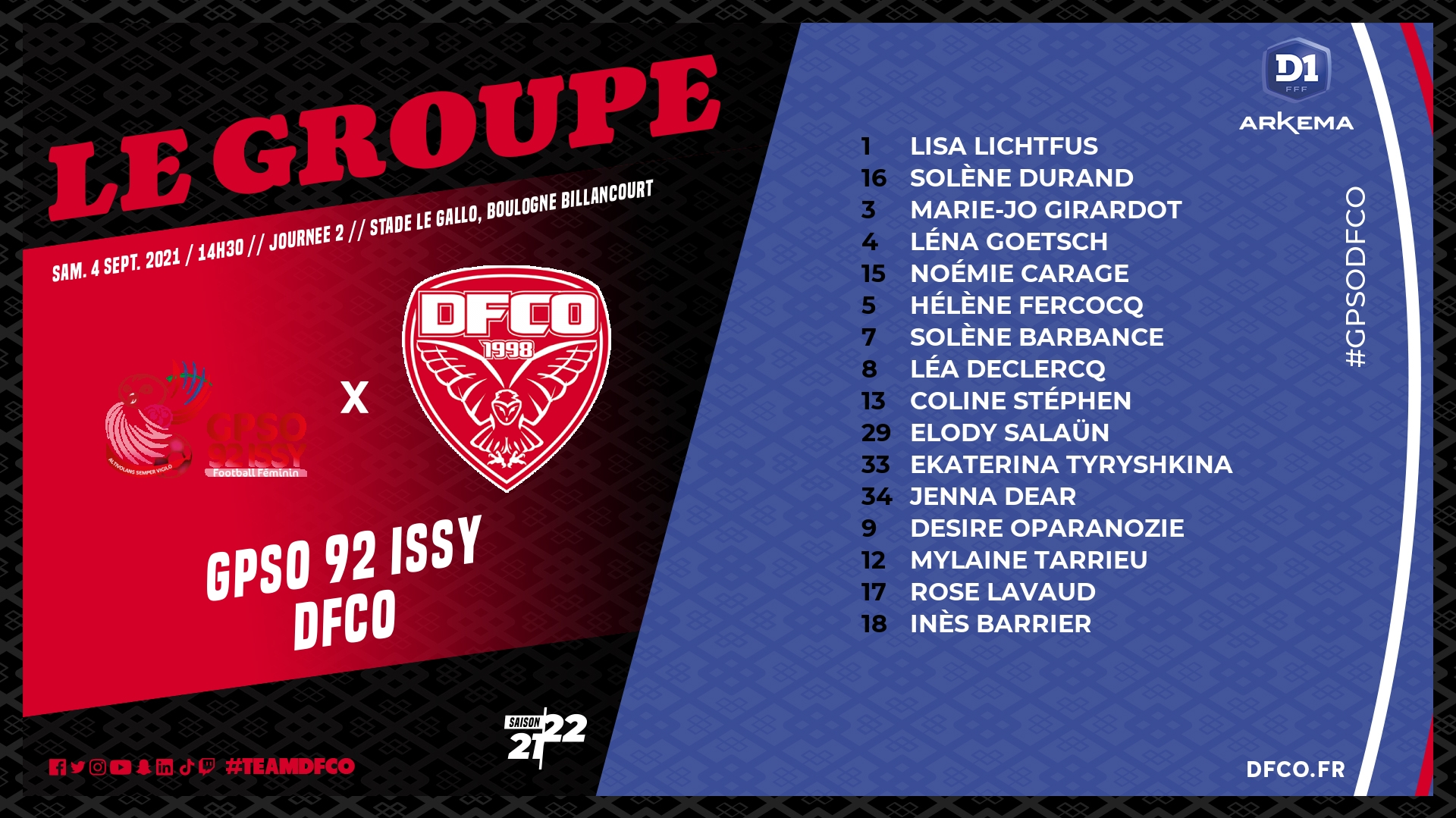 D1 Arkema / GPSO 92 Issy – DFCO : le groupe dijonnais
