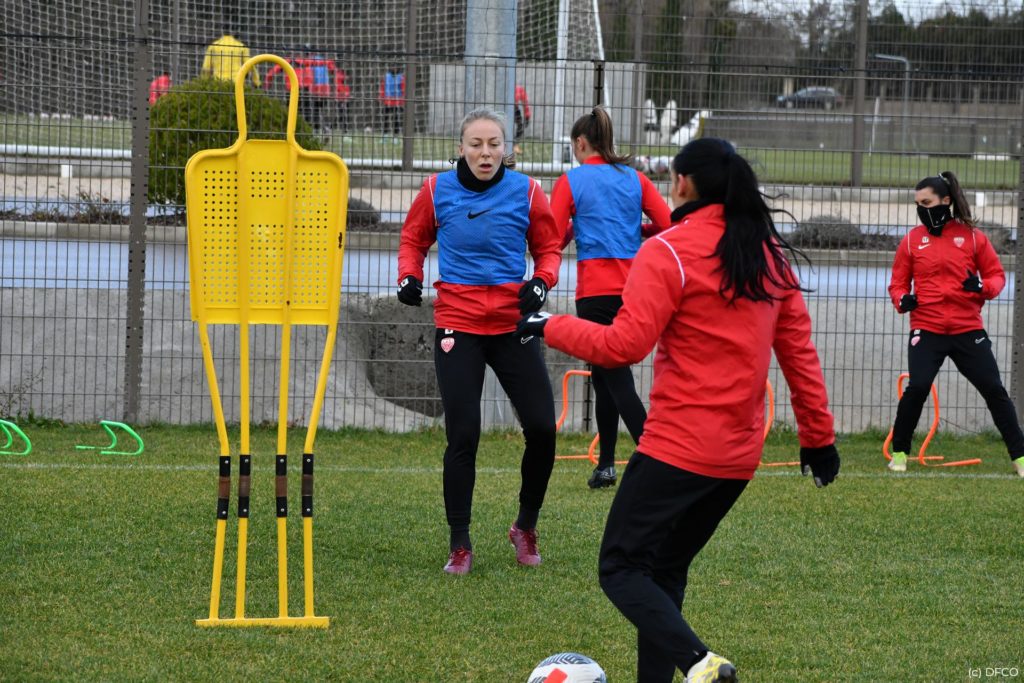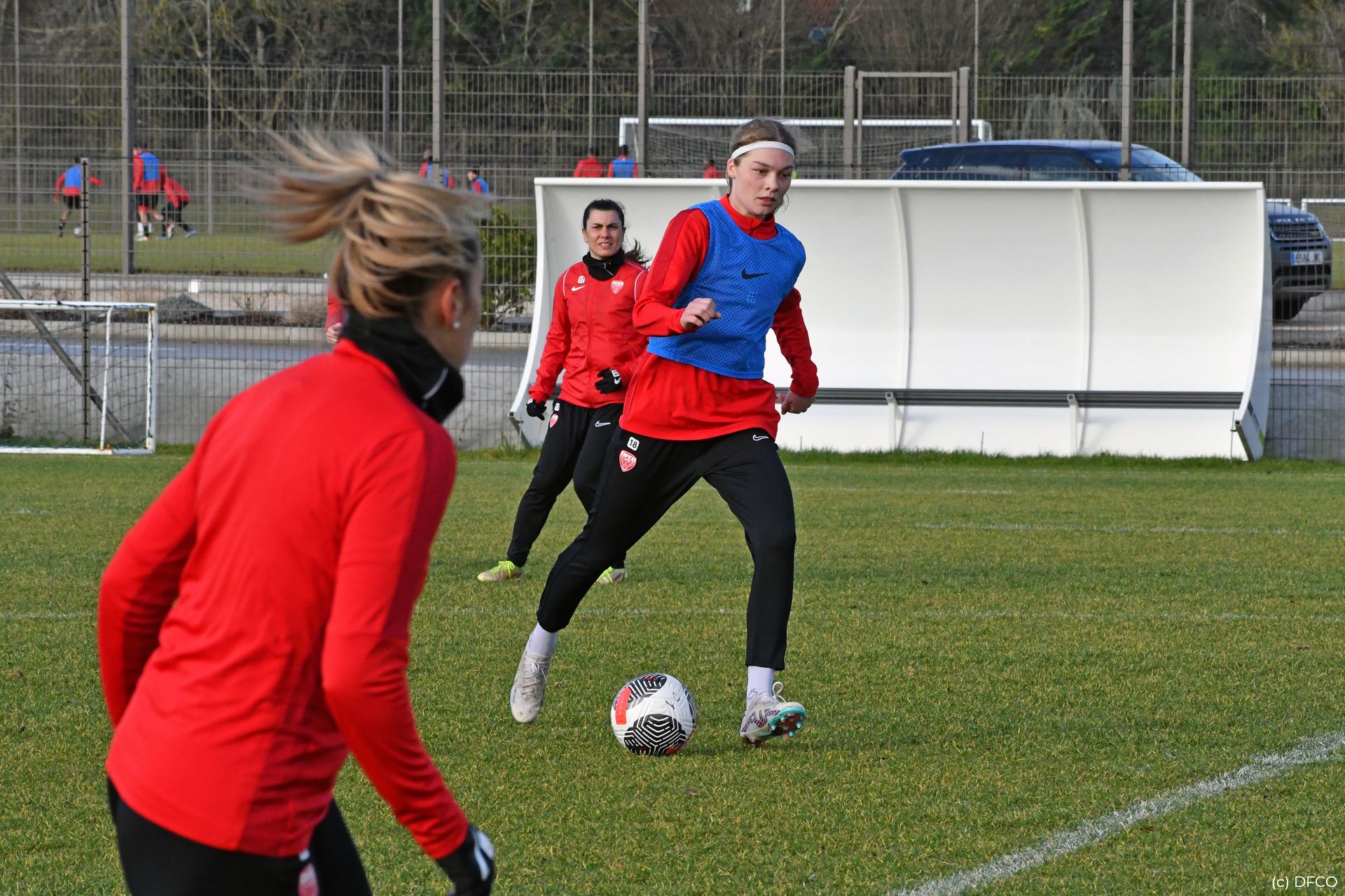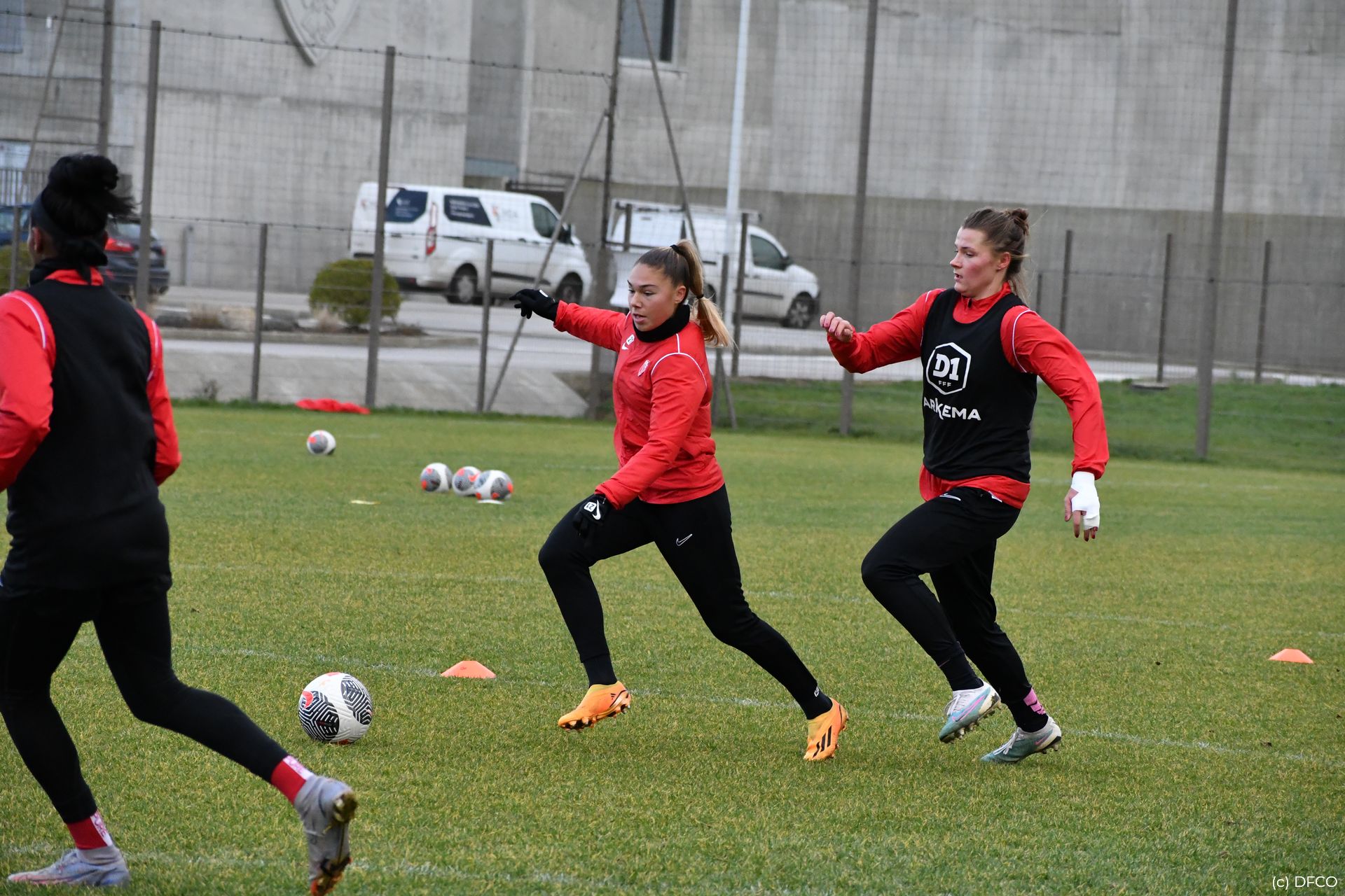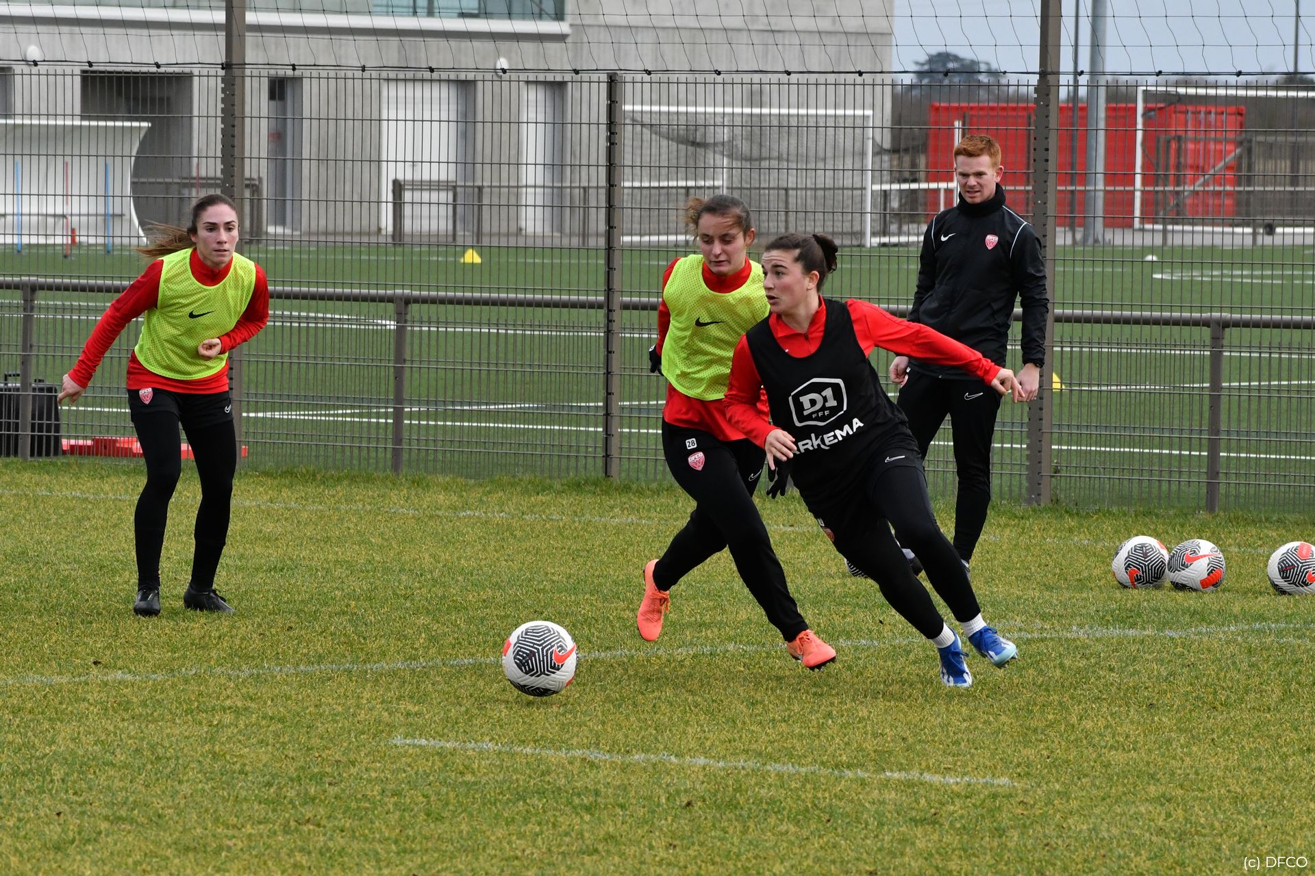 Notre effectif de D1 Arkema a fait son retour au centre d’entraînement mercredi matin, à une semaine d’un match important face au FC Fleury 91 (Billetterie). Retour en photos sur une séance où le ballon a occupé une place centrale !
