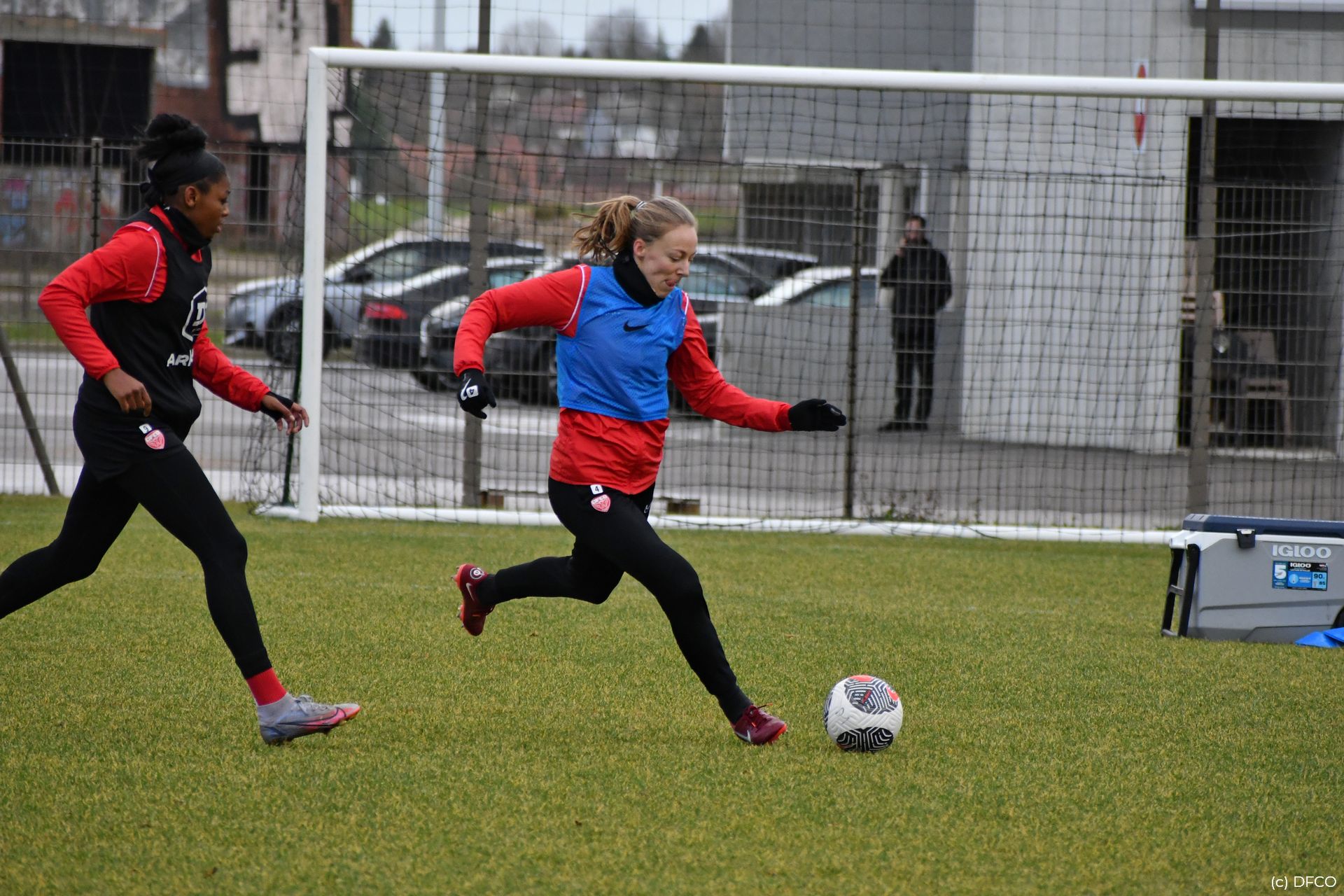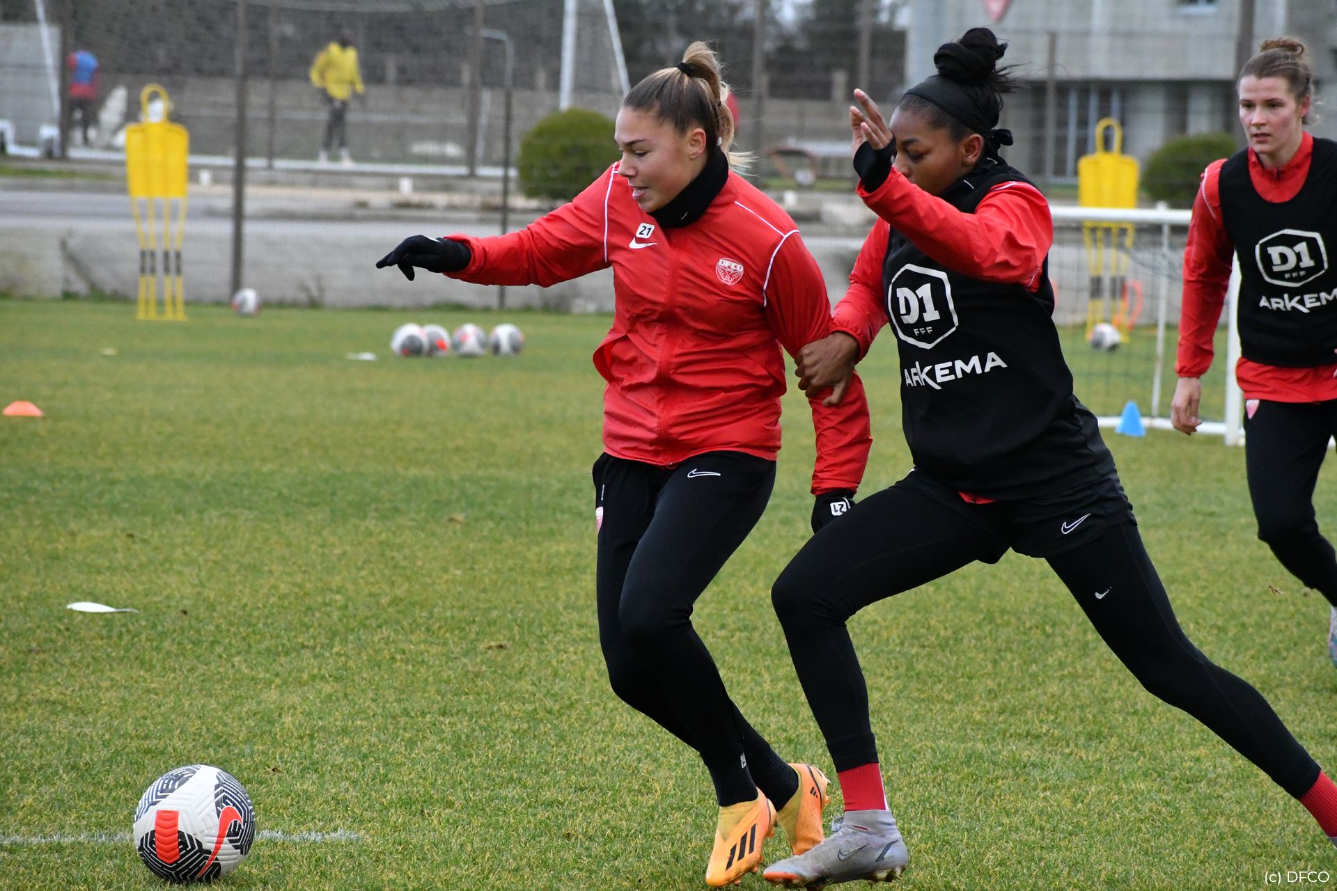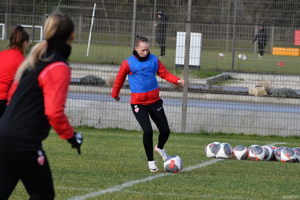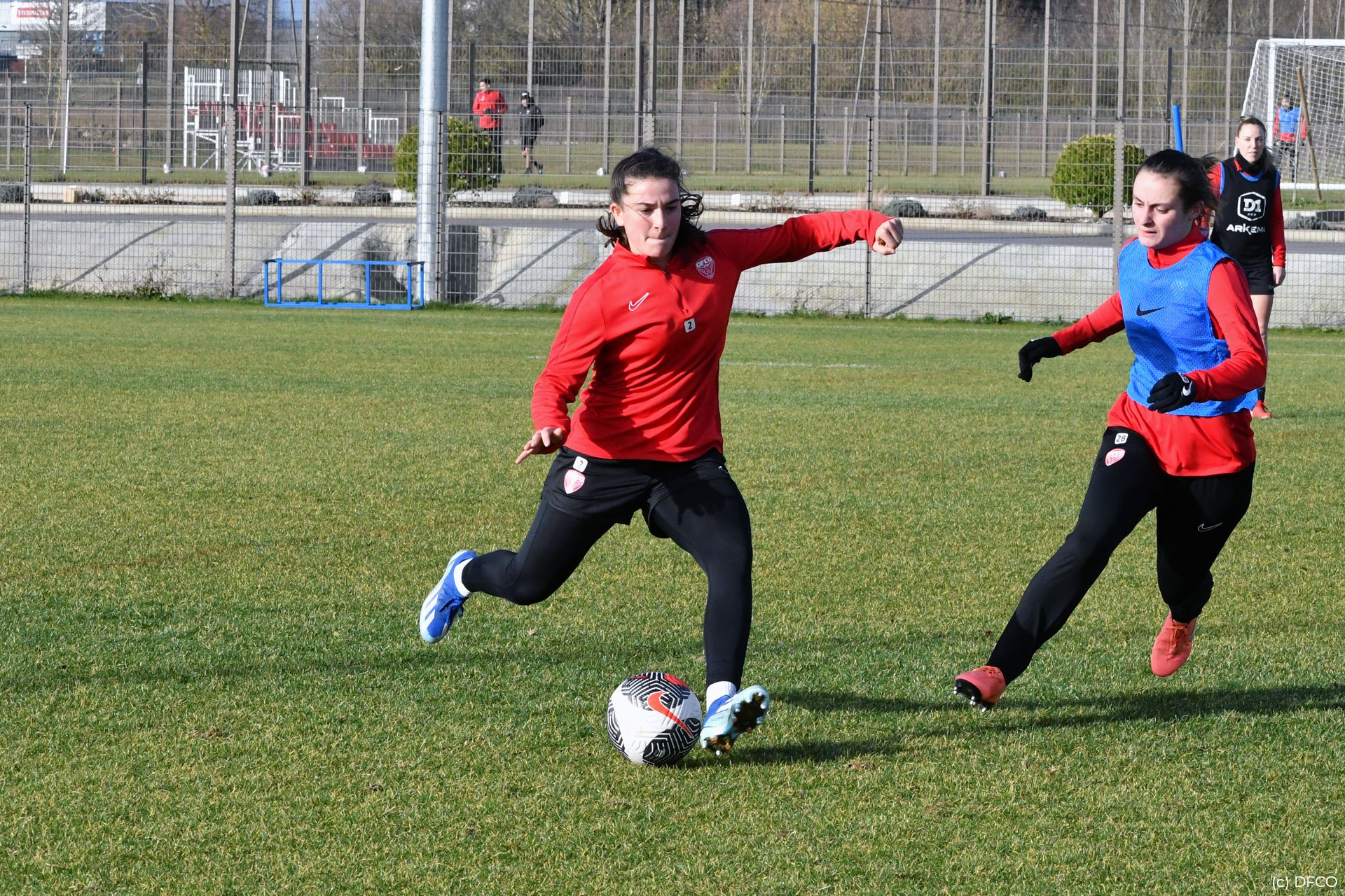 Notre effectif de D1 Arkema a fait son retour au centre d’entraînement mercredi matin, à une semaine d’un match important face au FC Fleury 91 (Billetterie). Retour en photos sur une séance où le ballon a occupé une place centrale !