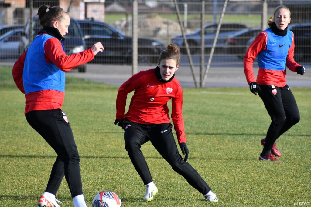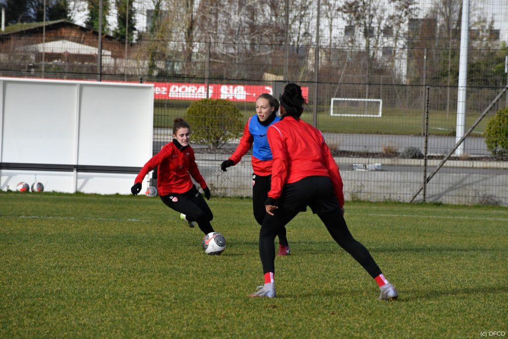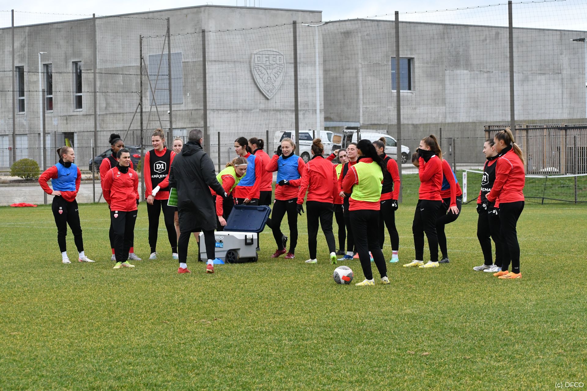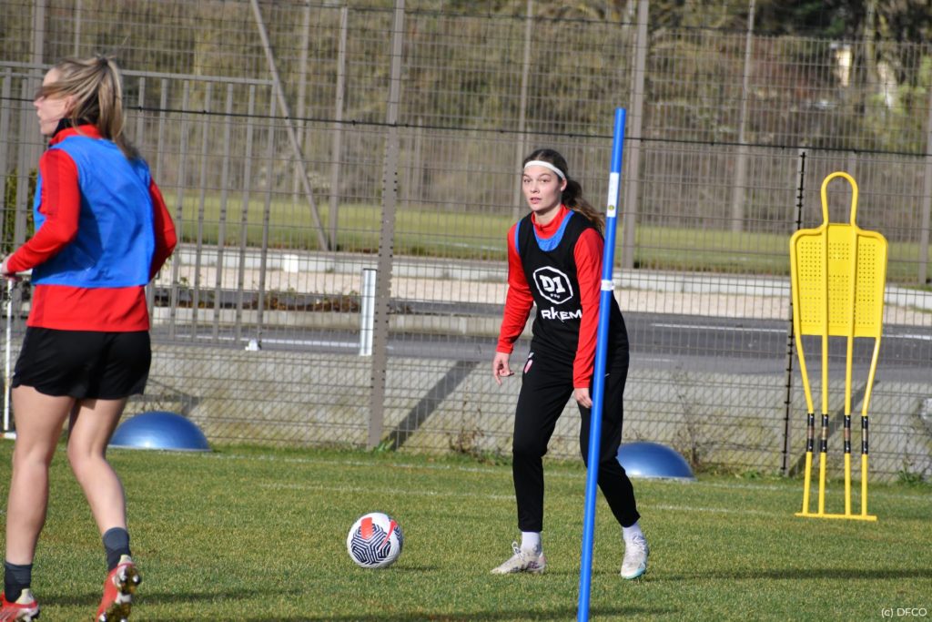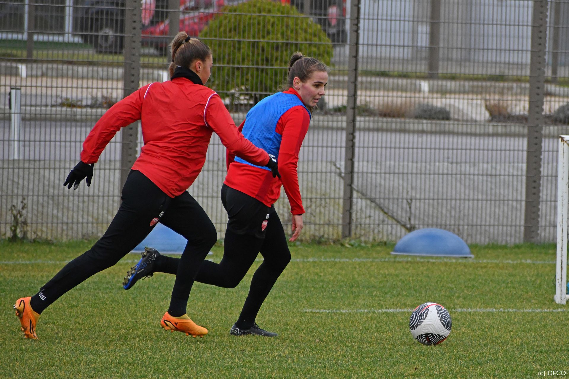 Notre effectif de D1 Arkema a fait son retour au centre d’entraînement mercredi matin, à une semaine d’un match important face au FC Fleury 91 (Billetterie). Retour en photos sur une séance où le ballon a occupé une place centrale !
