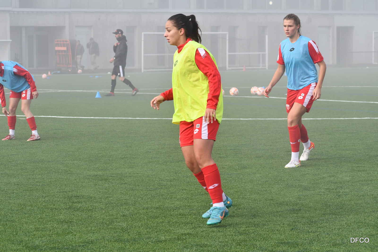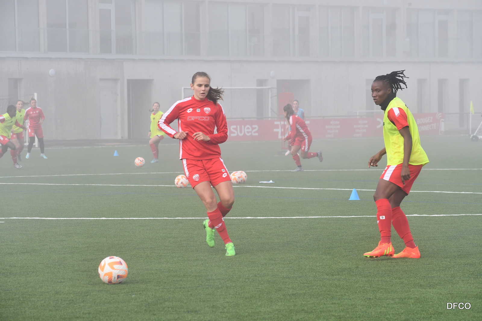 Les dijonnaises se sont entraînées ce matin dans le brouillard avec notamment des exercices de vitesse, de conservation perception et jeu. Des jeunes de l’effectif U19 ont également pris part à la séance.