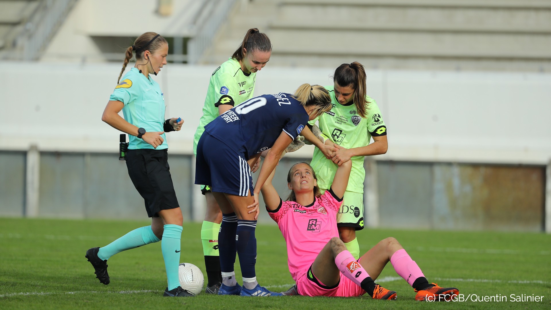 Les Dijonnaises entament le match de la meilleure des manières. Pressant haut, elles récupèrent bon nombre de ballons et sur l'un d'eux, Sh'nia Gordon depuis le côté gauche trouve Rose Lavaud dans la surface. La frappe de l'ancienne bordelaise ricoche sur la barre de Moorhouse. Léa Declercq a suivi. Son ballon est contré et trompe la gardienne bordelaise ! (0-1, 6')