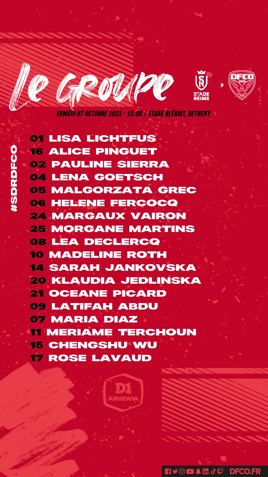 Le DFCO se déplace à Reims ce samedi pour le compte de la 3ème journée de D1 Arkema (coup d’envoi 15h). Pour cette rencontre, Sébastien Joseph et son staff ont convoqué un groupe de 18 joueuses.
