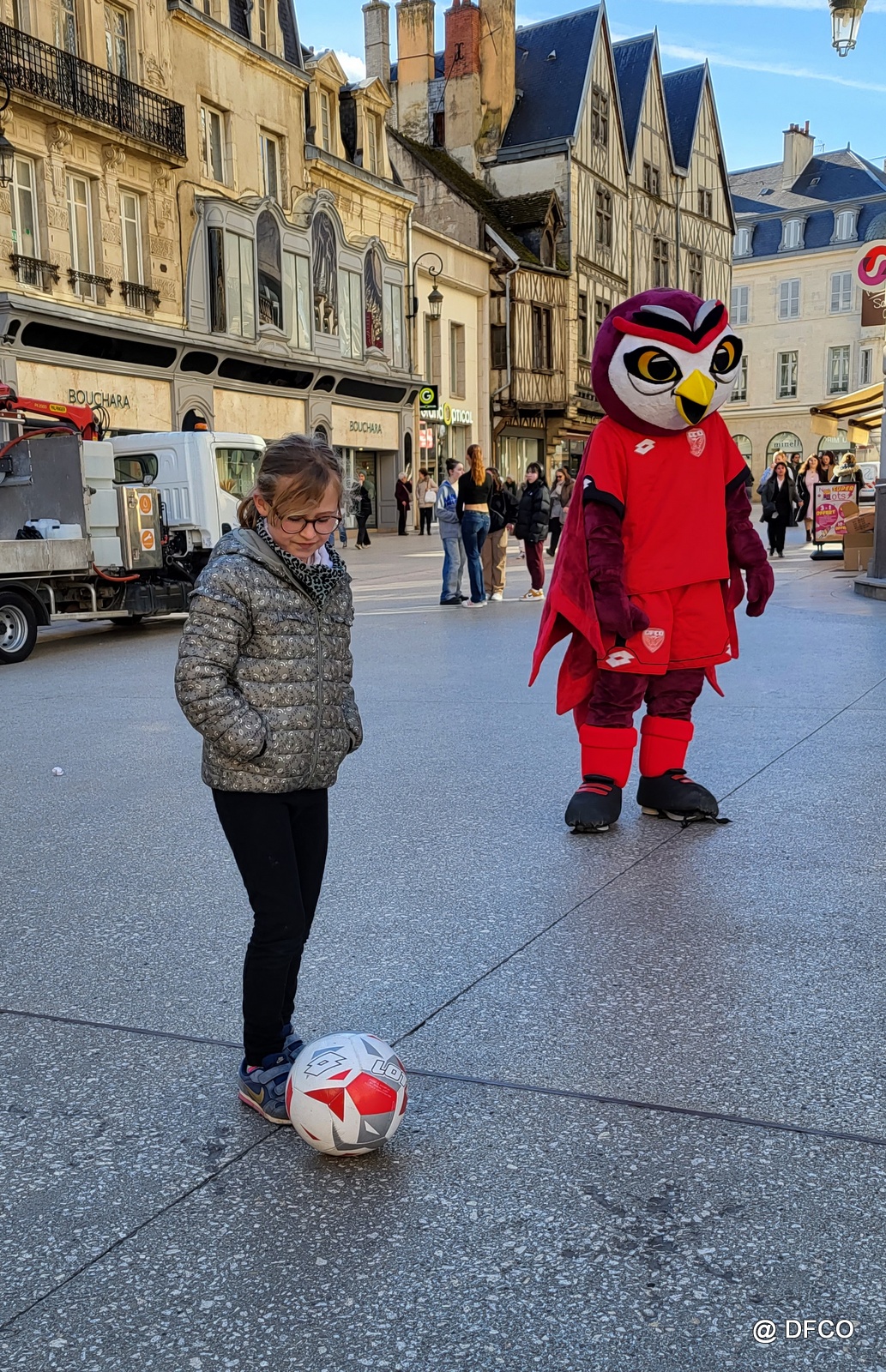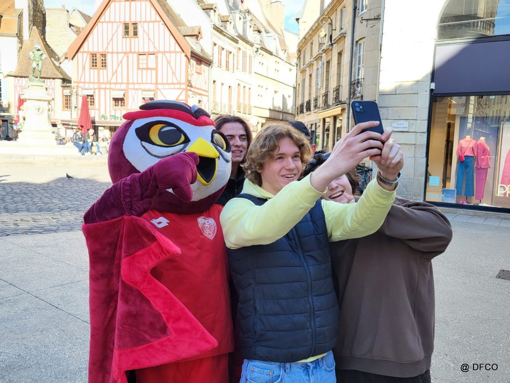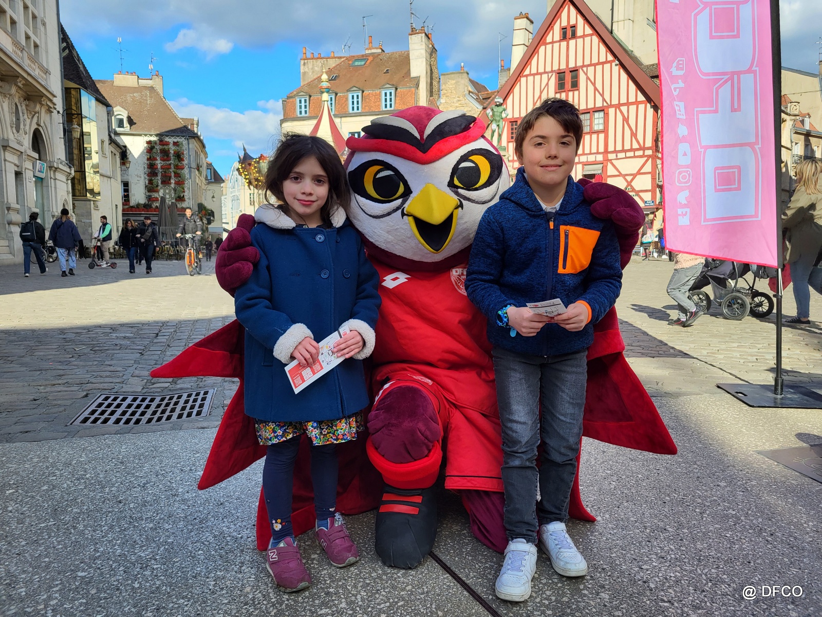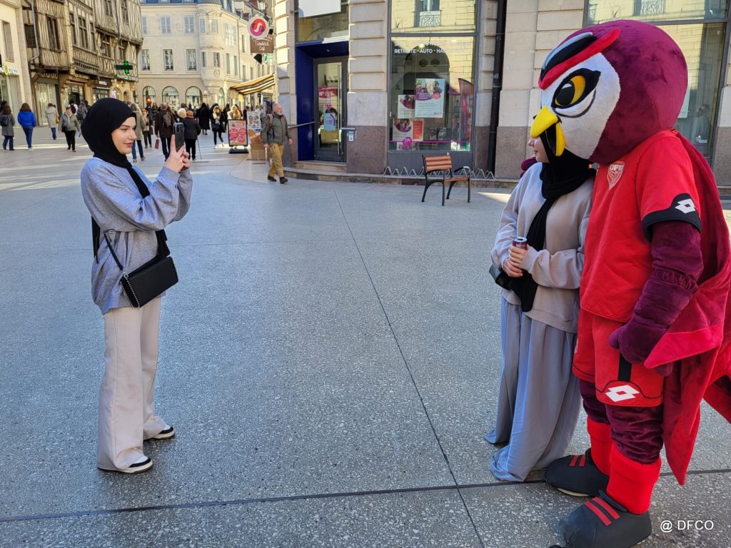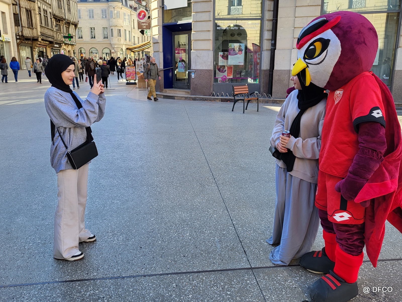 Lors d’une opération en centre-ville de Dijon en compagnie de sa mascotte Lolie, le DFCO a récolté des sourires et beaucoup d’encouragements de la part des Dijonnais et des commerçants !
