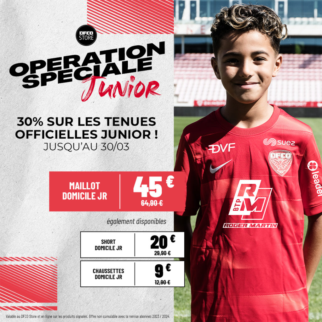Durant tout le mois de mars, le DFCO Store propose une Opération Spéciale Junior ! C’est le moment d’en profiter !