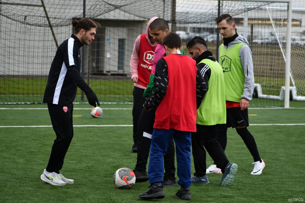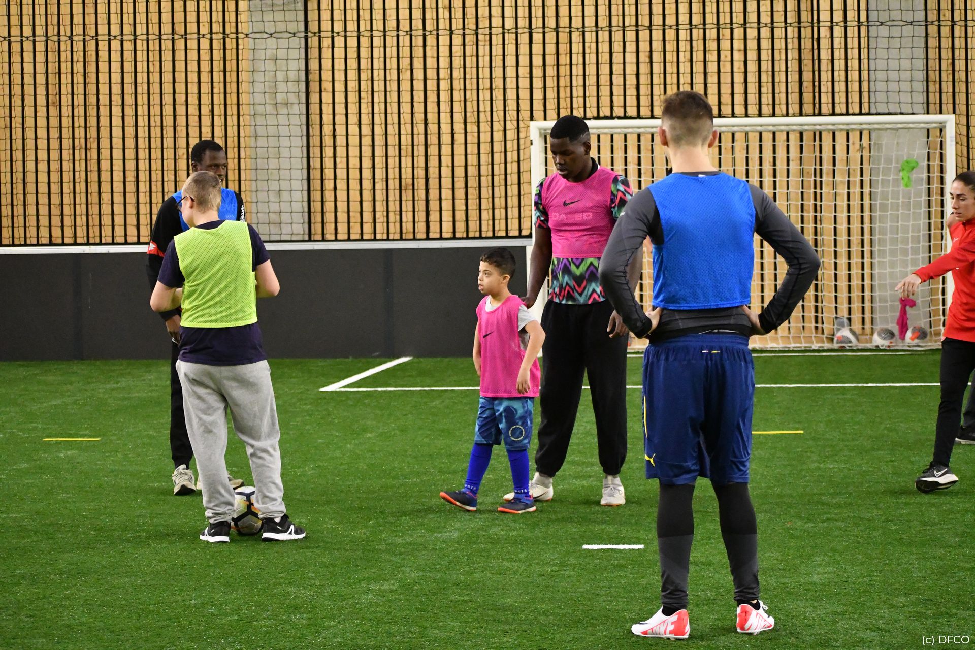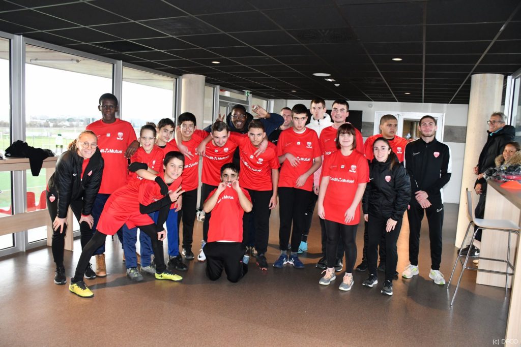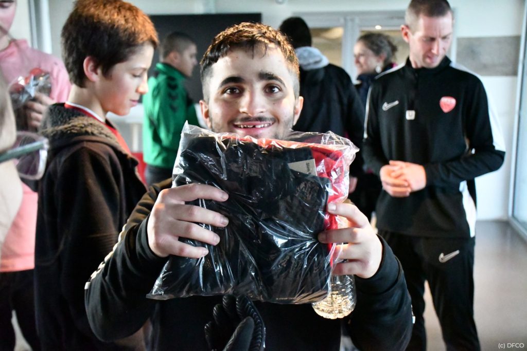 C’était une semaine un peu spéciale pour Tous au Foot. Les jeunes venus des différents établissements médico-sociaux se sont en effet vu remettre une tenue complète d’entraînement maillot, short et chaussettes Nike, marquée du logo de Tous au foot, de leurs initiales et du logo du partenaire de la section le Crédit Mutuel.