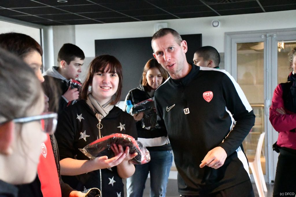 Jeudi après-midi retour sur le terrain synthétique pour le 2e groupe pour une séance articulée autour du jeu ballon au pied et du collectif. En fin de séance, ce sont Sébastien Joseph et Sylvain Carric, le directeur sportif de la section féminine qui ont procédé à la remise des maillots aux jeunes.
