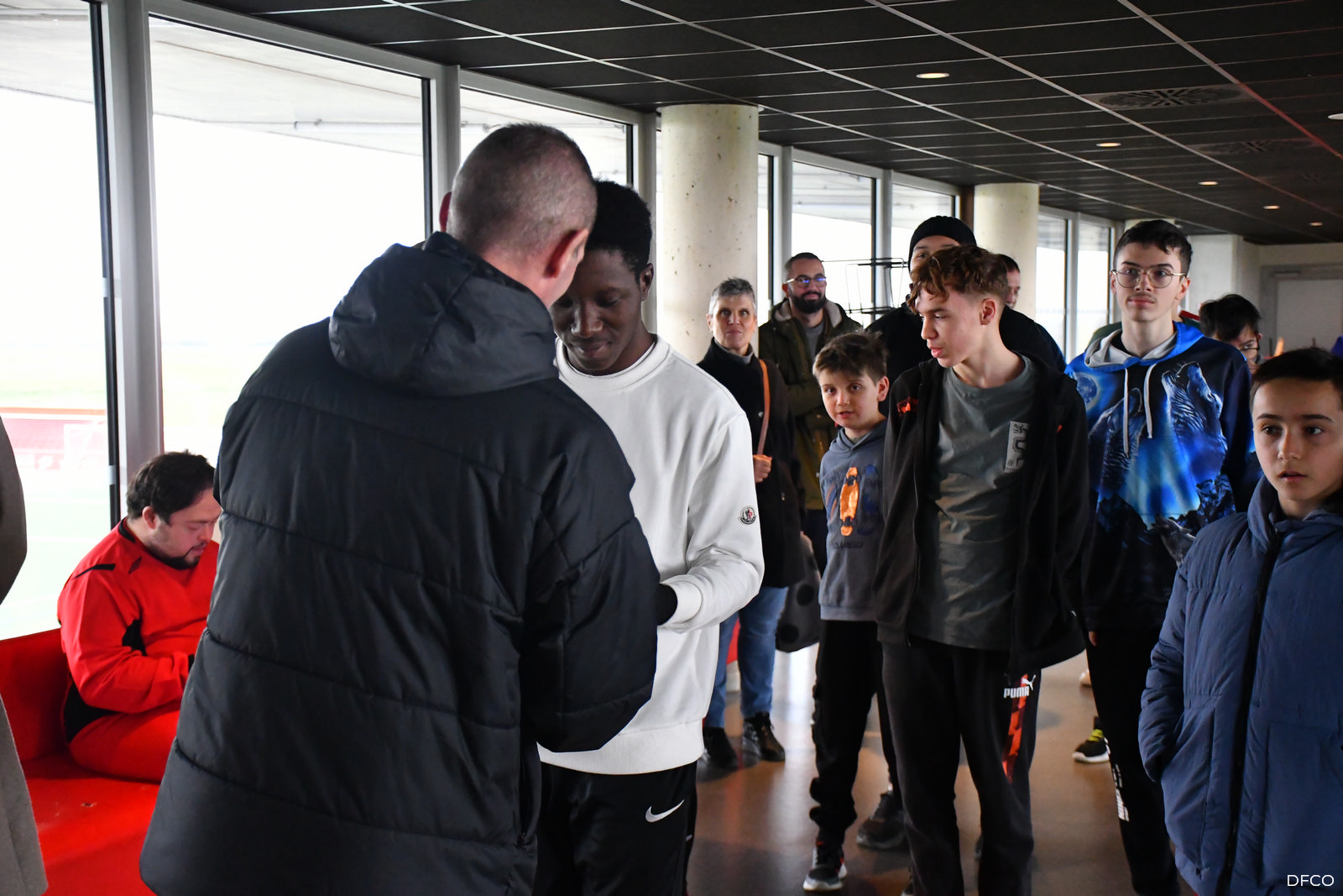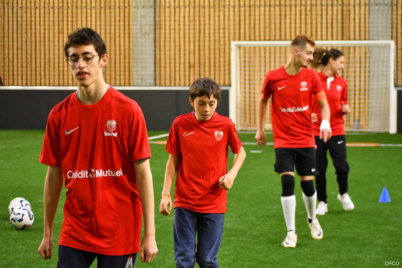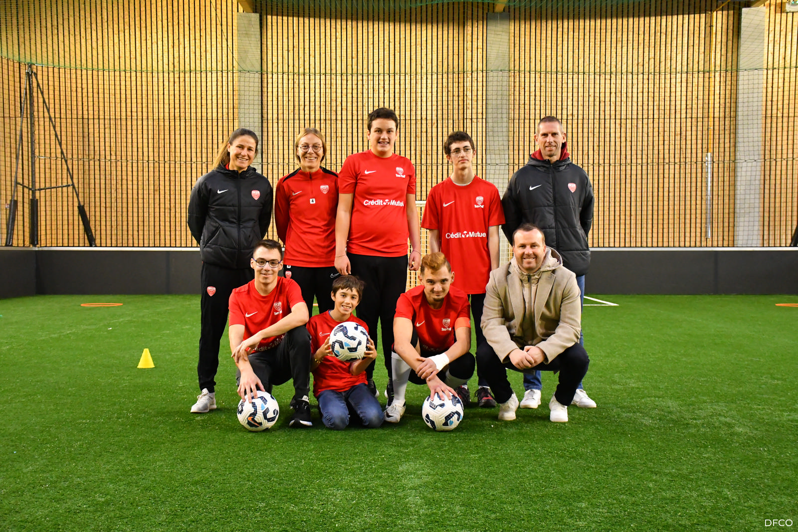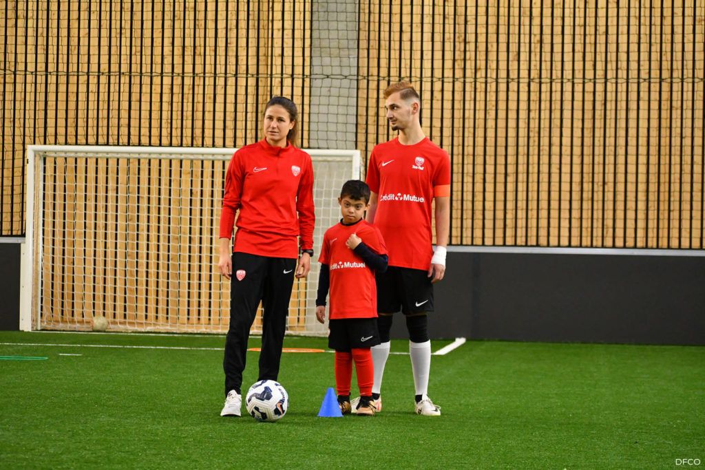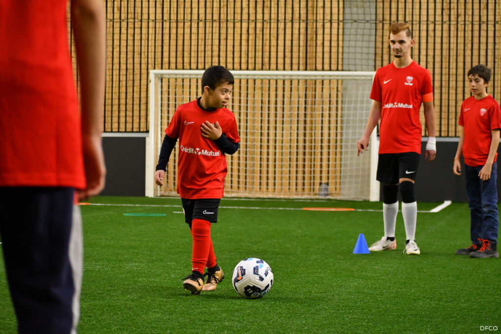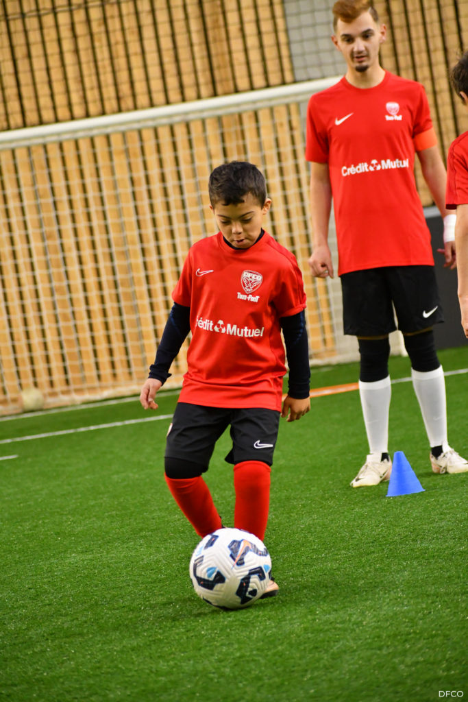 En ouverture de la séance de jeudi après-midi les jeunes licenciés de Tous au Foot ont reçu leurs tenues aux couleurs du DFCO et du Crédit Mutuel, partenaire de la section.