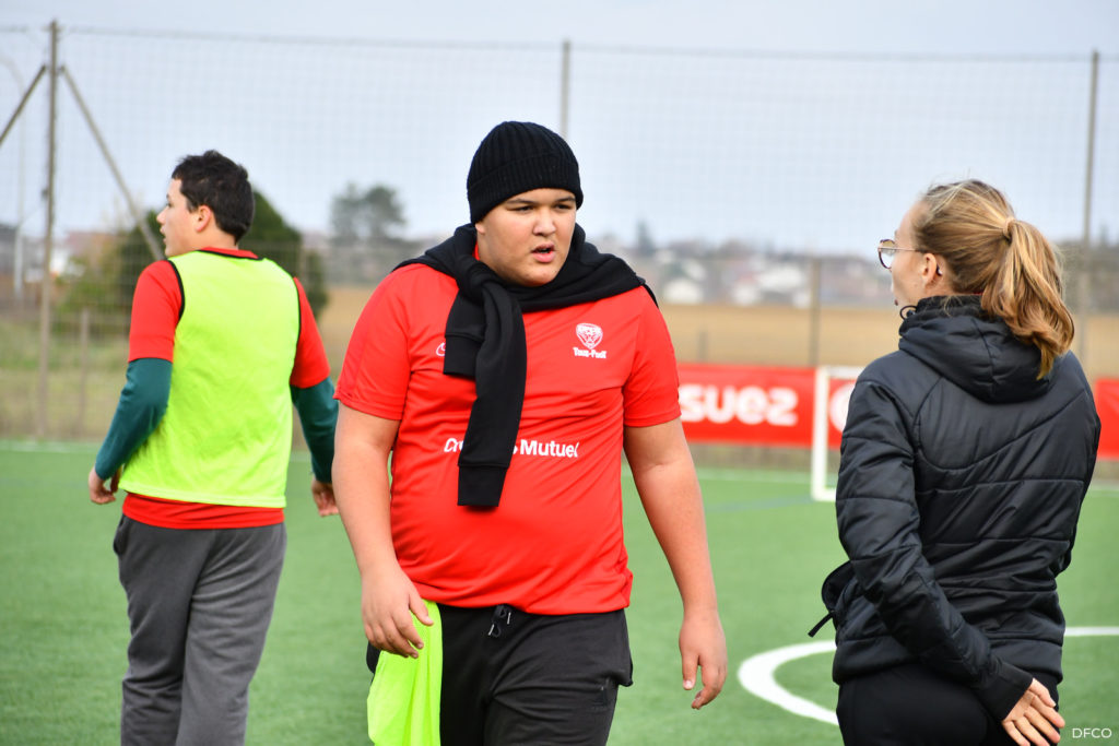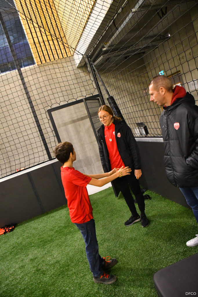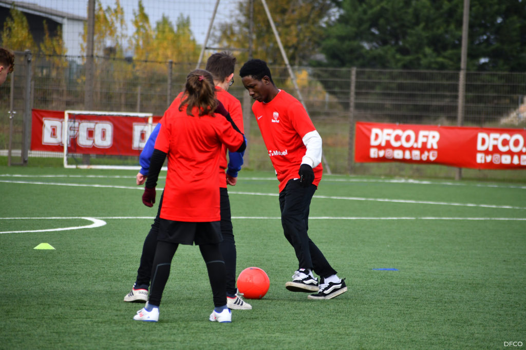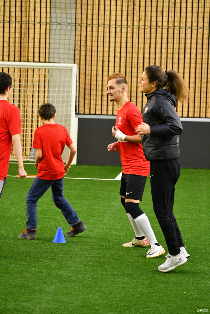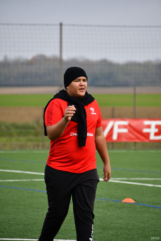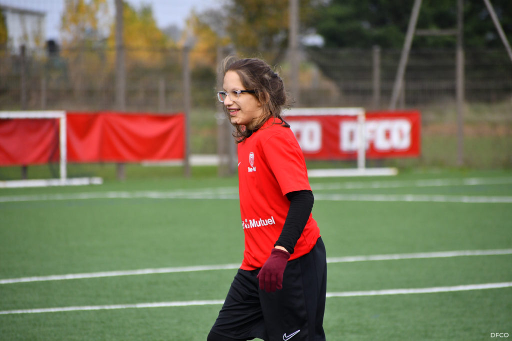 La jeune équipe a ensuite repris le chemin du terrain, pour une séance animée comme toujours par les joueuses professionnelles Léna Goetsch et Noémie Carage. Au programme : épervier avec et sans ballon pour se réchauffer, puis entraînement au Challenge mi-temps auquel les jeunes prendront part à la pause de la rencontre entre le DFCO et Montpellier le 7 décembre prochain dans le cadre de la semaine des Handicap’s.