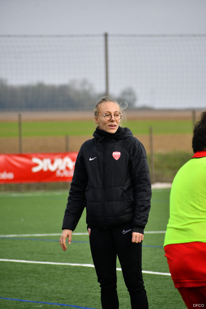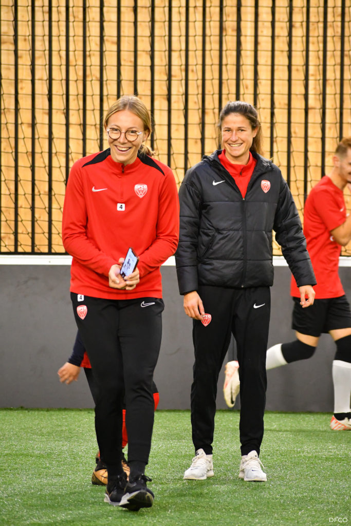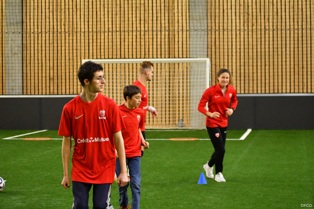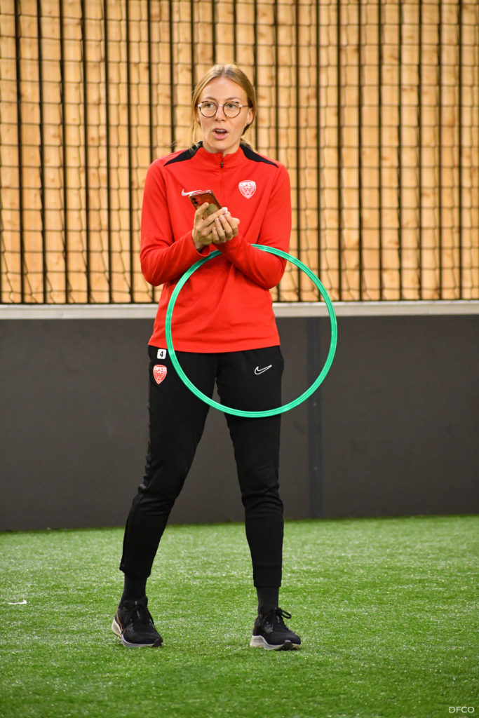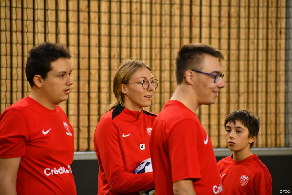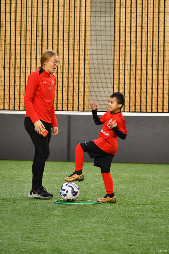 La jeune équipe a ensuite repris le chemin du terrain, pour une séance animée comme toujours par les joueuses professionnelles Léna Goetsch et Noémie Carage. Au programme : épervier avec et sans ballon pour se réchauffer, puis entraînement au Challenge mi-temps auquel les jeunes prendront part à la pause de la rencontre entre le DFCO et Montpellier le 7 décembre prochain dans le cadre de la semaine des Handicap’s.